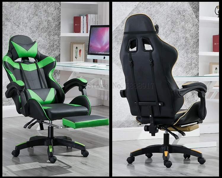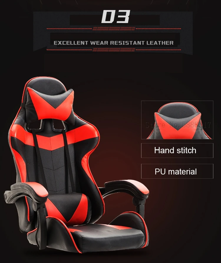 Классический дизайн-Эргономичный игровой стул с классическим внешним видом и подходящим размером, широко используется для интенсивных игровых сеансов, домашнего отдыха или работы в течение долгих часов. Посылка: 1 x игровое кресло 1 x инструмент для сборки (вам нужно собрать его самостоятельно!) Характеристики: Название продукта: игровое офисное кресло Модель: C57742 Цвет: черный и красный, черный и синий, черный и золотой, черный и белый Материал: ПВХ (поливинилхлорид) кожа + эластичная ткань + сталь Макс. Нагрузка: 150 кг Полный размер: 64x120 см/25,19 ''x 47,24'' сидячий Размер: 37x46 см/14,56x18,11 дюйма (обратите внимание, что возможна погрешность в 1-3 см вследствие измерения вручную!) Применимый рост: 155 см-190 см характеристики: -90 ° ~ 150 ° конструкция лежа, может лежать как кровать. -Выдвижная подножка, сделает вас более ослабленным во время перерыва. -Кожаная подушка высокого качества, комфортно сидит, устойчива к царапинам. -5-когтевое универсальное колесо, большой подшипник и много бесшумных. -Свободно вращается на 360 °. -Высота регулируется, под рост разных людей.
