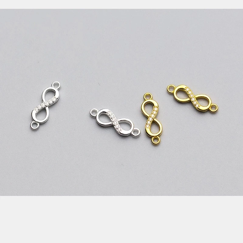 8 коннекторов из стерлингового серебра 925 пробы с цирконием DIY, оригинальные ювелирные изделия, 16x5 мм, золото, серебро, высокое качество, подвески, подвески