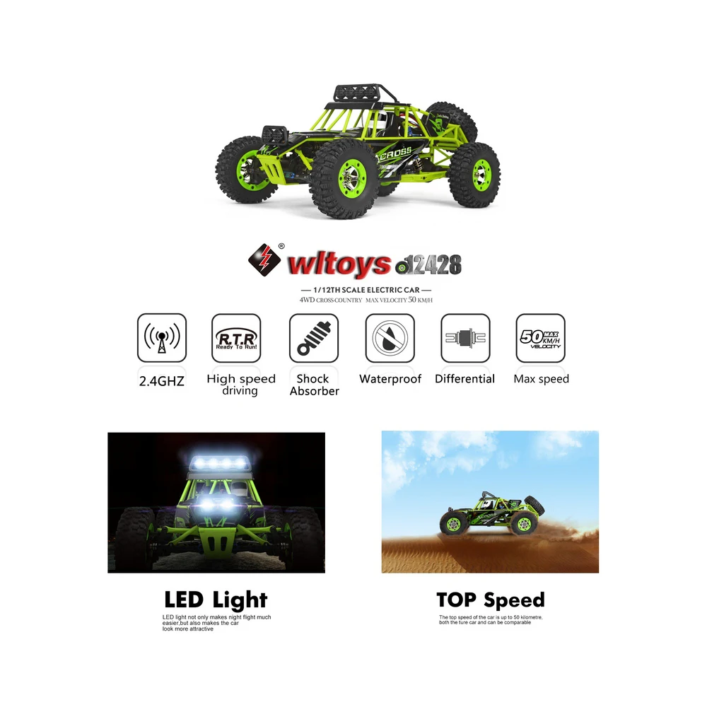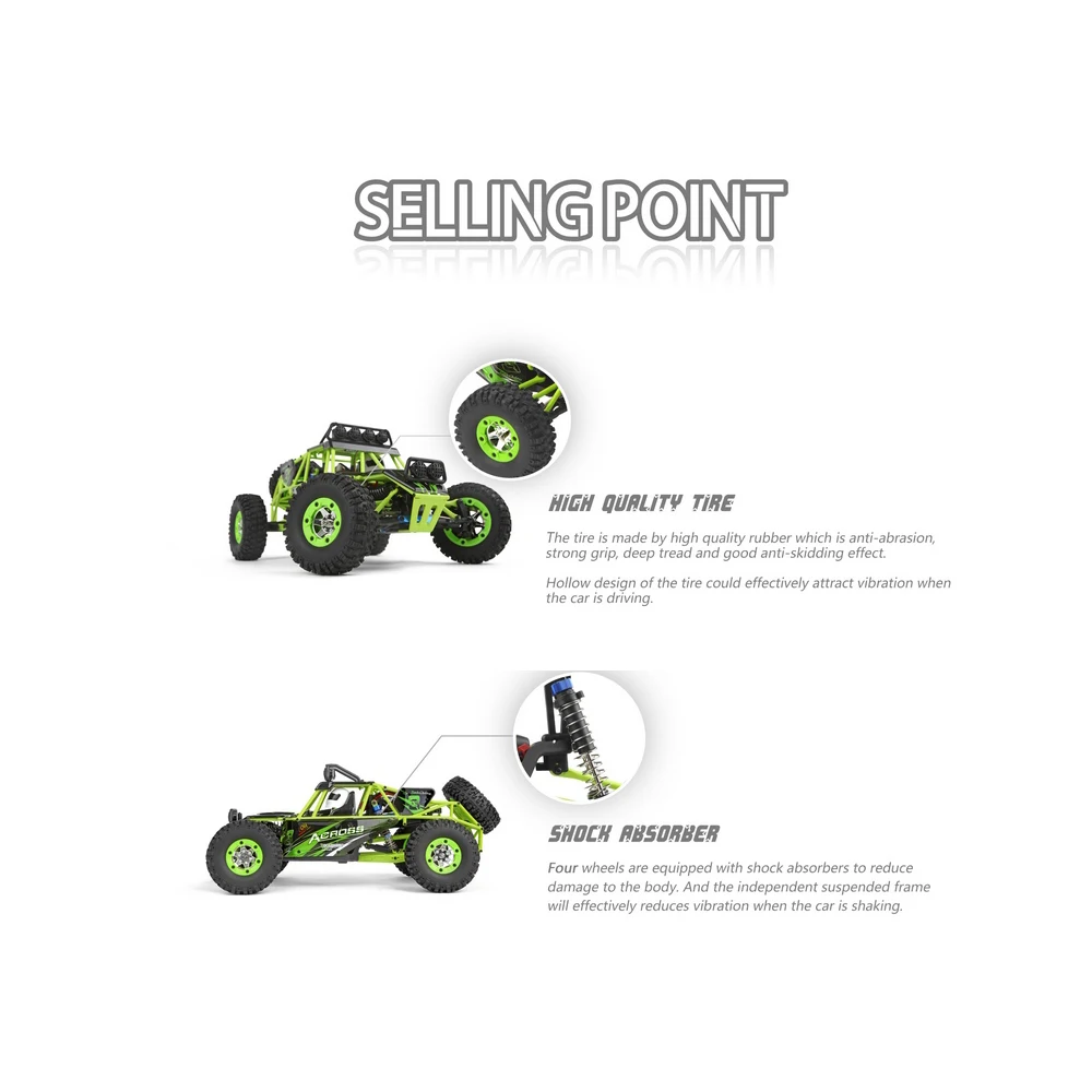 1. Высокоскоростная скорость соревнований составляет 50 км/ч, резиновые шины толстые, мощность сильная, система не трудно взбирается, И колеса не будут застревать при езде в песке. Увеличенное шасси позволяет избежать физических повреждений.Адаптер 4*0044