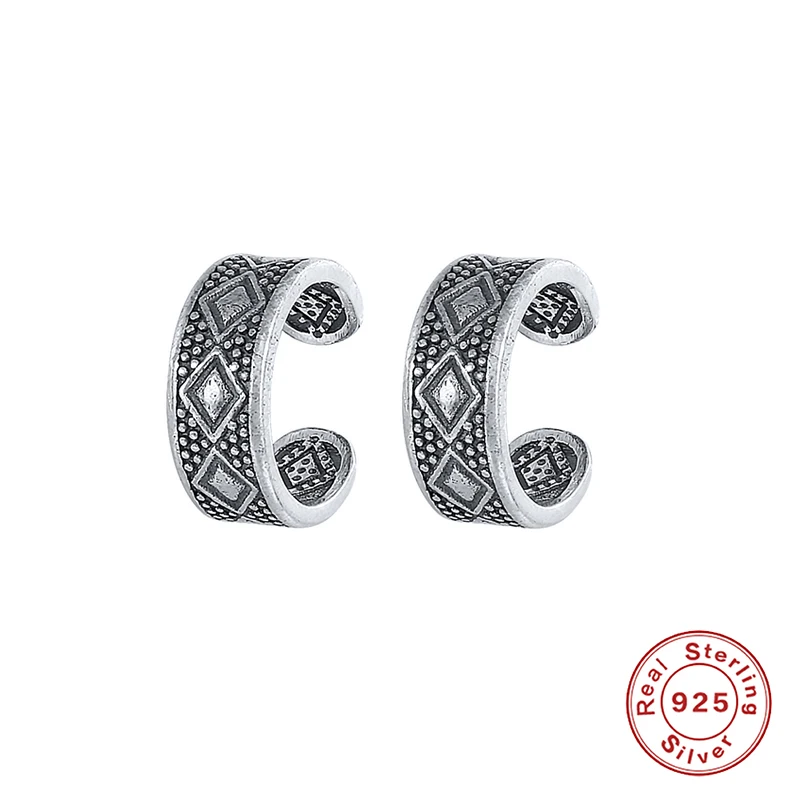 925 пробы, серебро, Ретро стиль, богемный стиль, этнические клипсы, серьги с геометрическим узором, манжеты для ушей, не пирсинг, хрящи, Серьги Brincos, ювелирное изделие