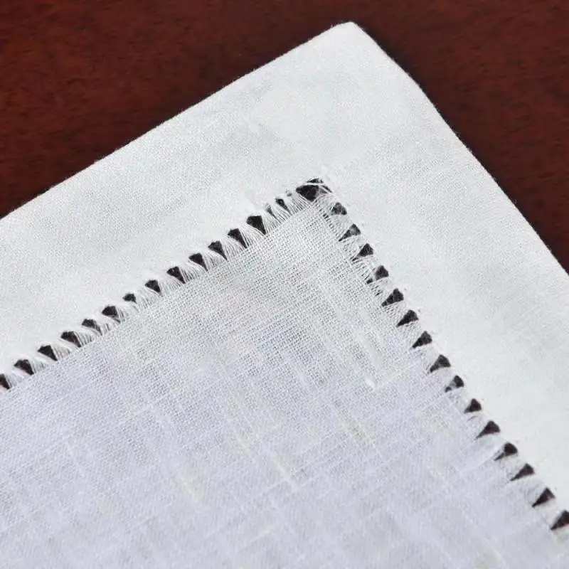 2 шт. высококачественные Прошитые салфетки/салфетки, 100% лен, ручная работа, белый/белый, банкеты/отель/кафе