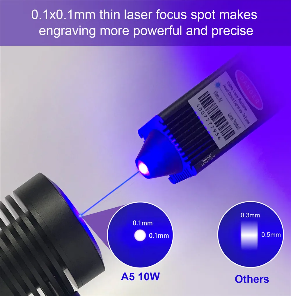 1. Ультра-тонкий пятно света: с помощью 405nm синий-фиолетовый лазер, диаметр пятна составляет всего 0,1 мм, и точность заново, то есть в два раза больше, чем в точности как другие 450nm синий лазерная гравировка машины. 2. Новый дизайн защиты глаз: лазерная Защитная крышка Идеально защищает ваши глаза, фильтрует УФ-светильник на 97%. Вы и окружающие люди можете смотреть лазерную гравировку без ношение защитных очков. Уменьшите стоимость ваших очков и неудобство при ношение защитных очков. 3. Прочная и простая конструкция установки: полностью металлическая конструкция делает машину более прочной и улучшает точность гравировки. Вся конструкция была разработана для быстрой сборки, и сборка, как правило, может быть завершена в течение 10-20 минут. 4. Модернизированный высокопроизводительный лазер с фиксированным фокусом: Нет необходимости регулировать фокус перед гравировкой; Новое лазерное фокусное расстояние на 50% меньше, чем у других обычных лазеров, удовлетворяет потребности сверхтонкой гравировки. Лазерная мощность лазера с фиксированным фокусом более стабильна, чем лазер с зумом. 5. Широкая совместимость: машина может быть совместима с различными зрелыми гравировальными программами, такими как LaserGRBL, LightBurn, поддержка Win XP / Win 7 / Win 8 / XP / Win 10, А также поддержка MAc system (LightBurn), формат гравировки файлов поддерживает NC, BMP, JPG, PNG, DXF и т. Д. 6. Точные масштабные линии оси: есть точные масштабные линии на оси X и оси Y для облегчения быстрого измерения длины. 410x400 мм интервал гравировки большой площади может удовлетворить ваши различные потребности гравировки. 7. Интегрированный шаговый двигатель и вал: машина использует интегральный винтовой стержень вместо комбинированного соединения. Шаговый двигатель и винтовой стержень интегрированы, что делает лазерное движение более точным и более прочным.