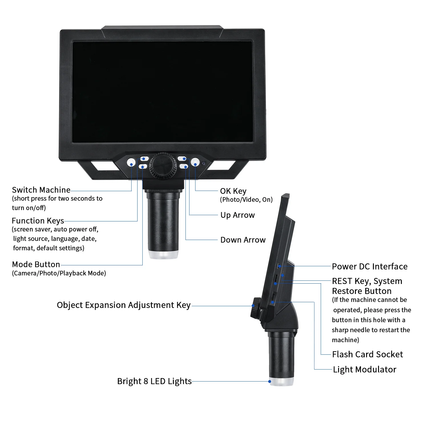 Это цифровой микроскоп с непрерывным зумом и зумом, и он имеет широкий спектр вариантов просмотра по сравнению с другими микроскопами, начиная от 1 до 1200 раз увеличения, И всегда находите подходящий для вас вариант.