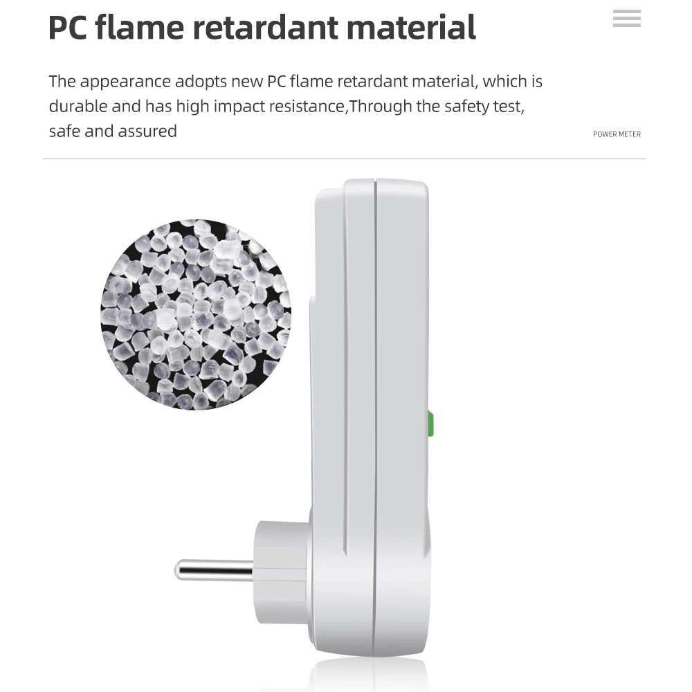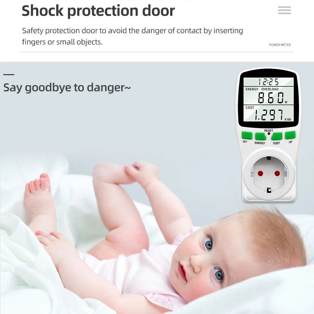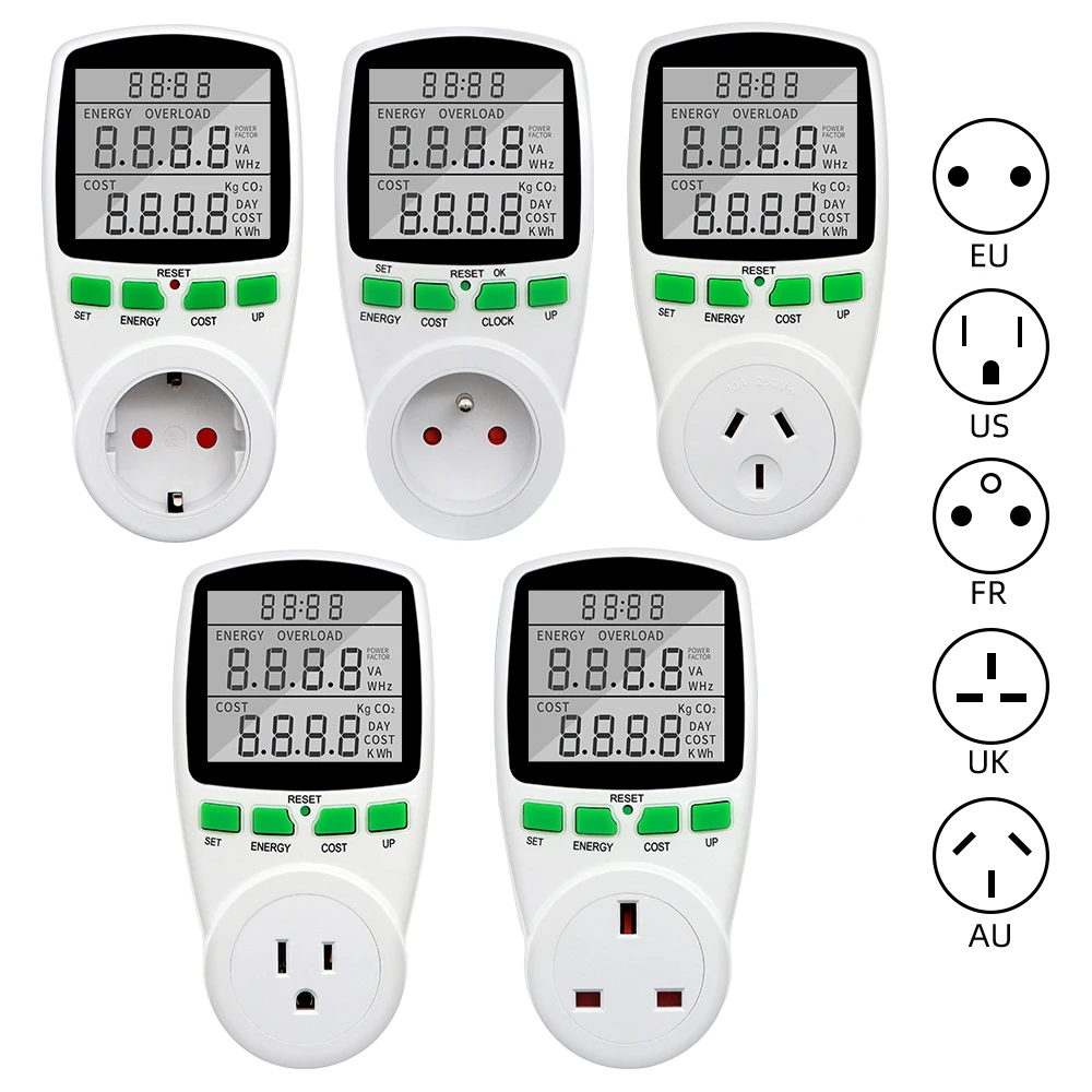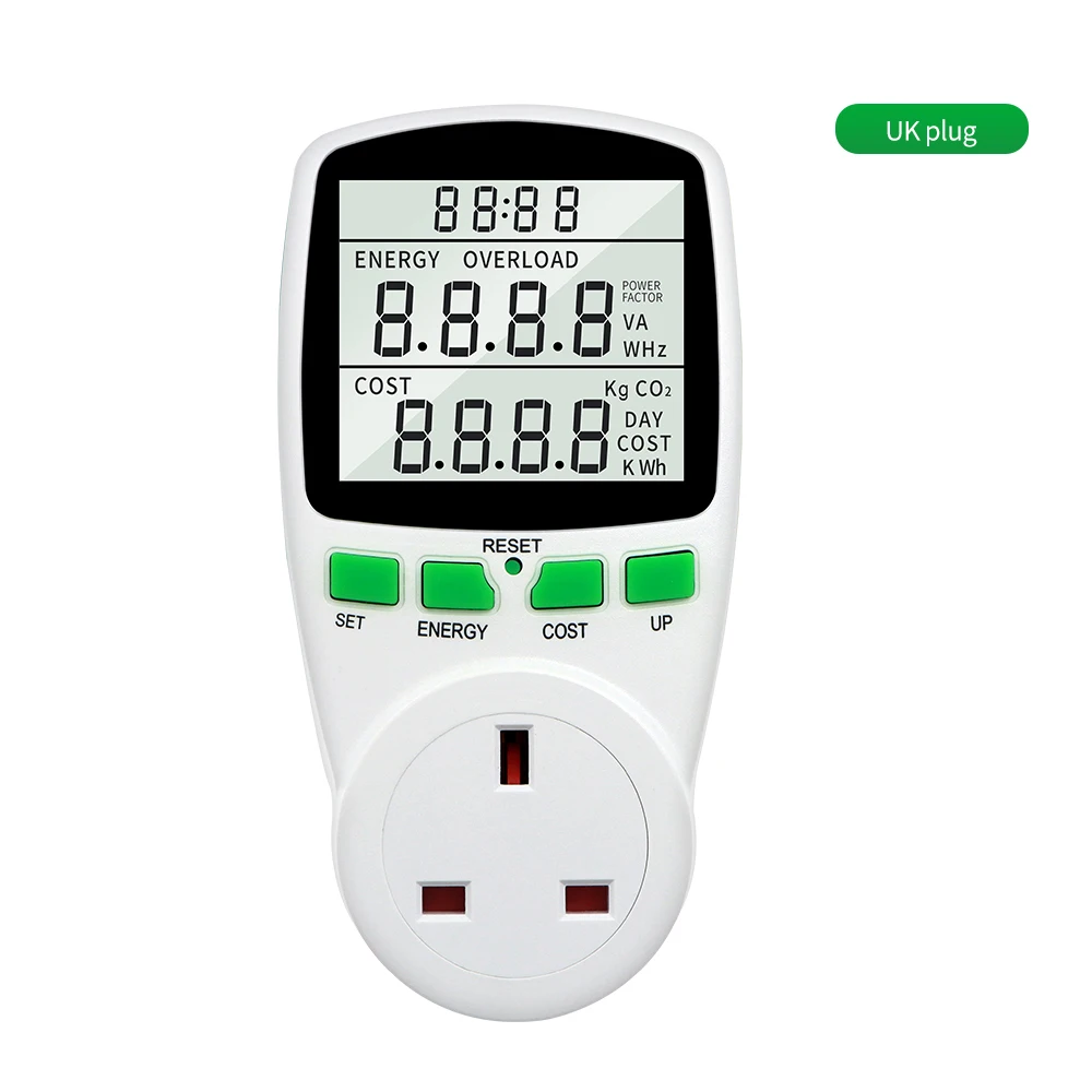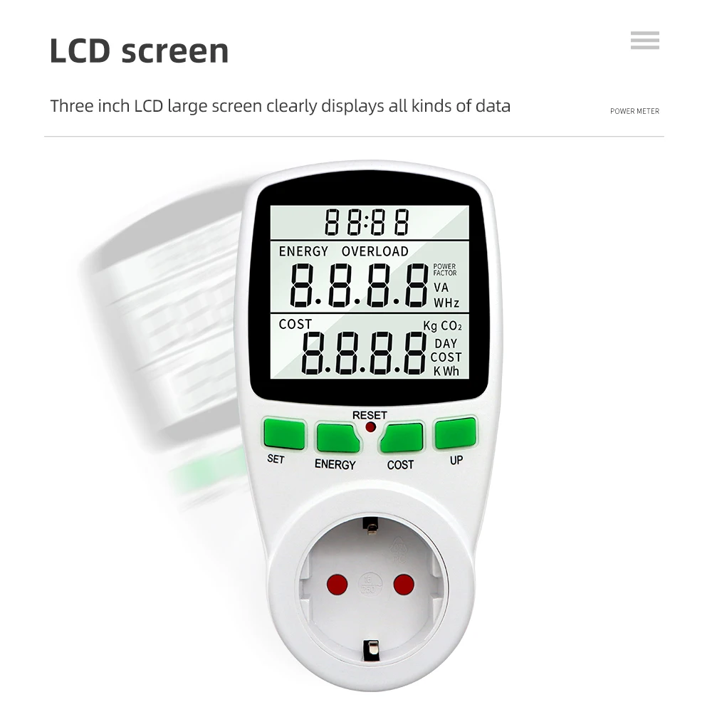 Измеритель мощности может измерять энергопотребление электроприборов, выброс caebon и стоимость электроэнергии. Это помогает пользователям отслеживать потребление электроэнергии и уменьшить мощность bil и выброс углерода.