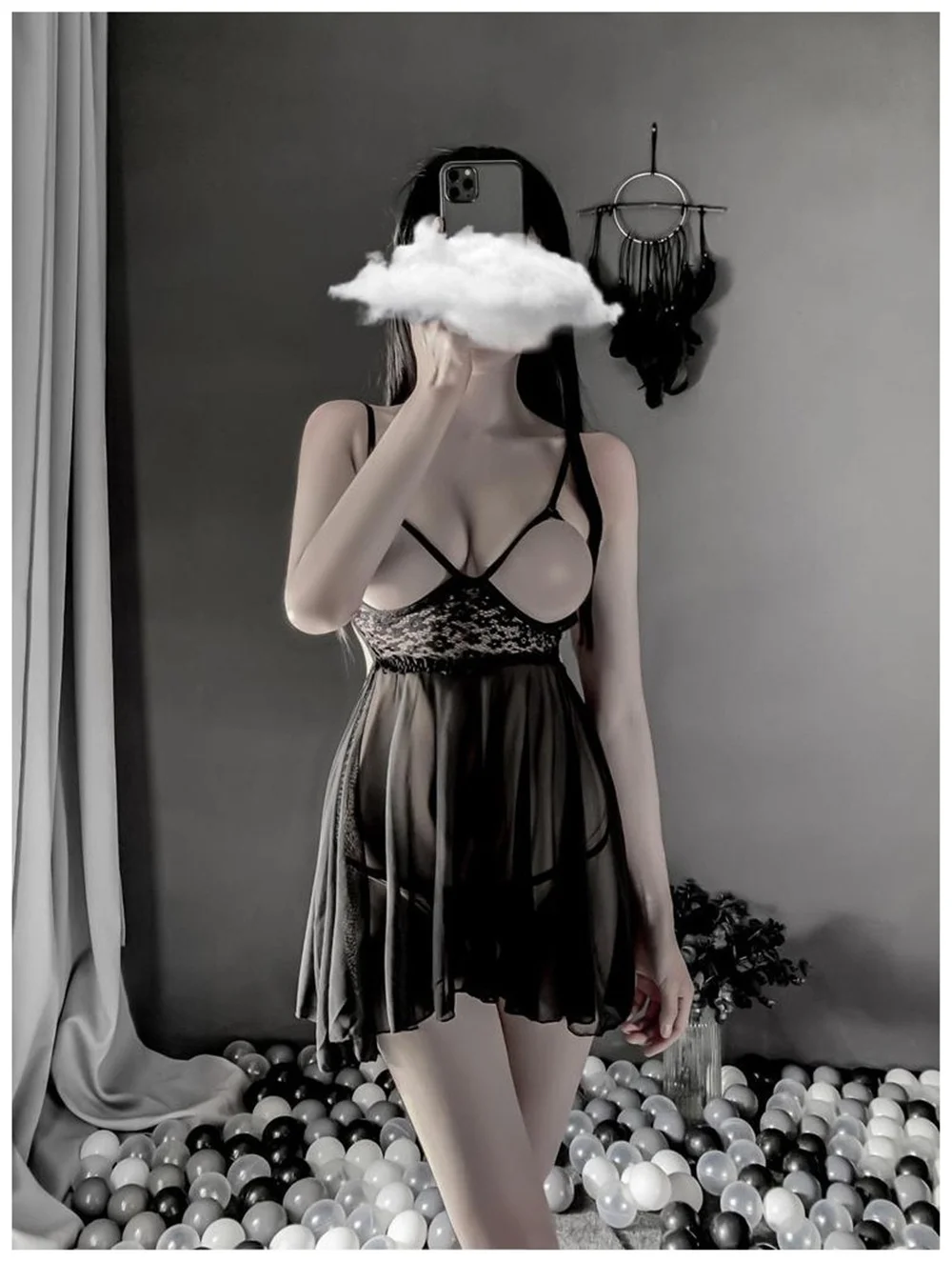 Сексуальный комплект нижнего белья из прозрачной вуали с кружевным вырезом, накладка на соски, Эротическая ночная рубашка, юбка на подтяжках, g-стринги, Babydoll, горячее нижнее белье