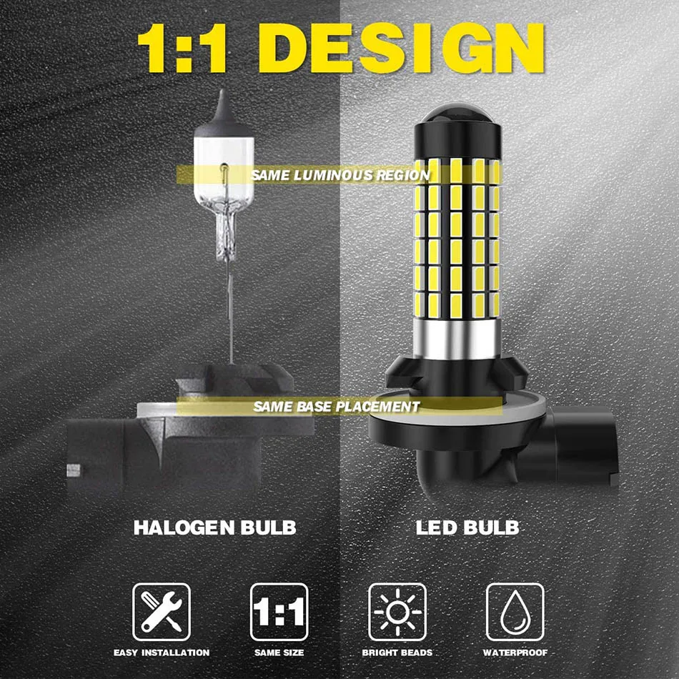 * Изготовлен из высококачественного SMDs, может выдерживать тряску и вибрацию. * Угол обзора 360 градусов устраняет горячие точки. * 78 светодиодных ламп высокой мощности 3014 намного ярче, чем оригинальный противотуманный светильник или DRL, и низкое энергопотребление. * Строгое тестирование перед отправкой. * Профессиональная упаковка. * 1 год гарантии.