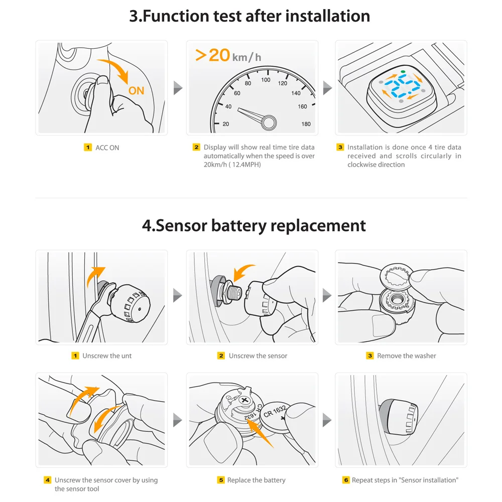 Благодаря беспроводной функции и простоте установки, эта система TPMS является идеальным устройством для измерения безопасности вашего автомобиля.
