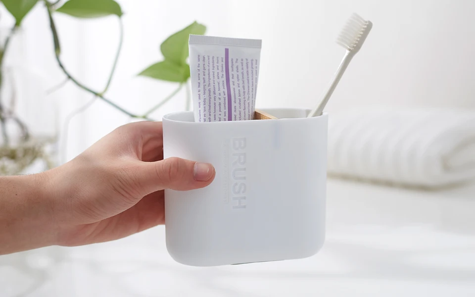 6. Держатель зубной щетки: четыре части дизайна, он может вместить до 4 зубных щеток. Вы можете удалить бамбуковую перегородку и использовать держатель зубной щетки в качестве чашки.