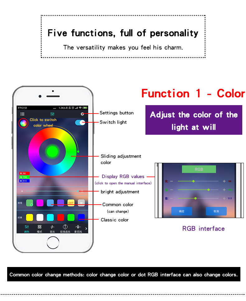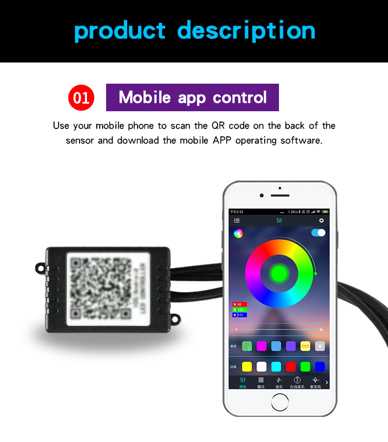 Управление приложением: отсканируйте QR-код, чтобы загрузить приложение для контроля изменения цвета Bluetooth-соединения