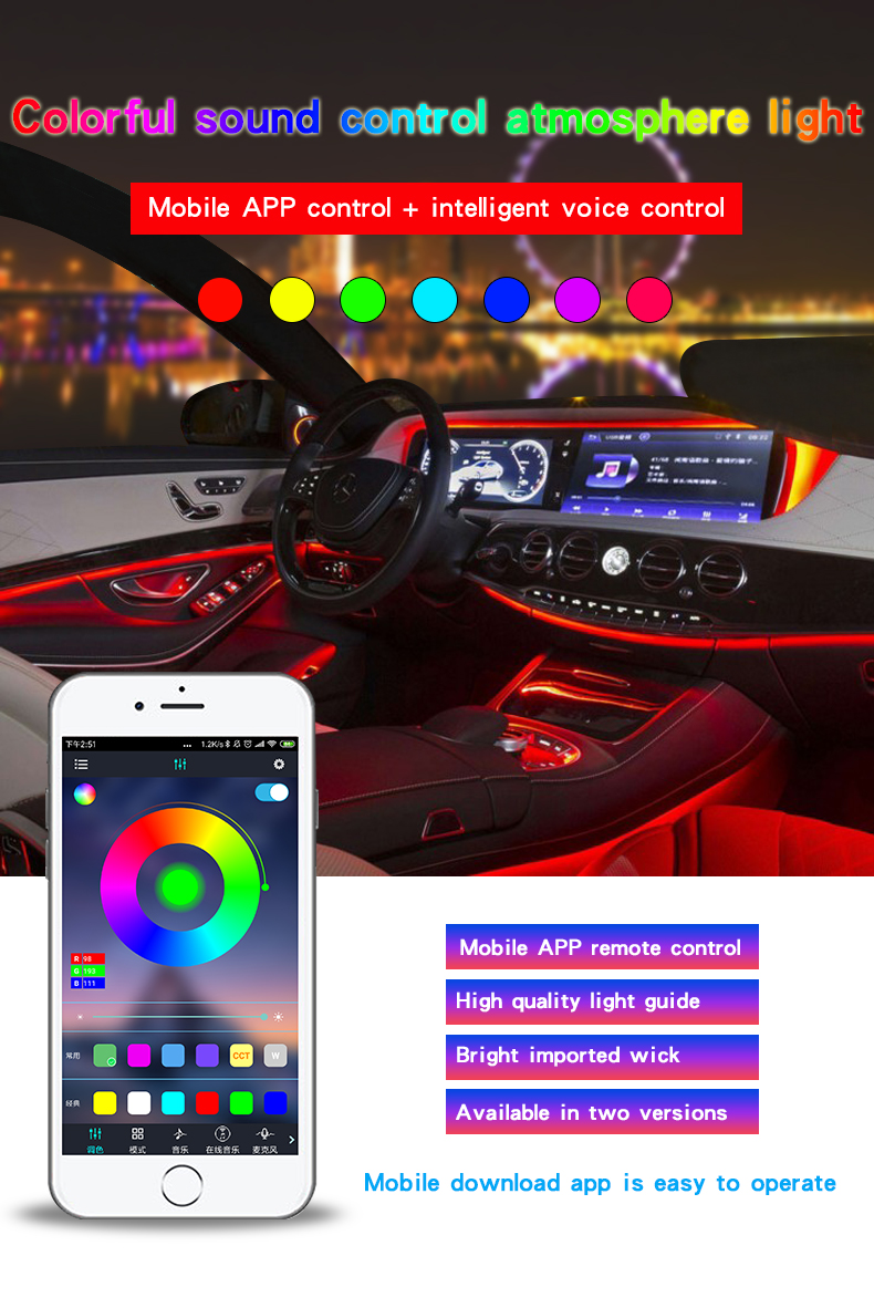 Светодиодная лента для украшения салона автомобиля, Светодиодная лента с автоматическим окружающим освещением, RGB-управление музыкой, гибкая трубка из Эл-троса, атмосферная неоновая лента