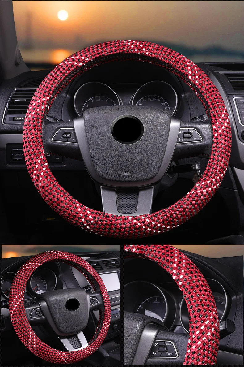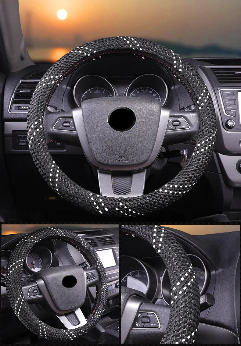 Изделие немного: ручной ледяной шелк пропускает воздух и не скользит, имеет ощущение супер-руки и не имеет запаха в экологически чистом внутреннем кольце, что снимает усталость от вождения. Функция продукта: защищает руль автомобиля, сочетается с интерьером автомобиля, чтобы играть декоративную роль, и Увеличивает трение Размер изделия: 37-38 см в диаметре (используется в 99% моделей) Характеристики продукта: применяется круглый тип и Тип D