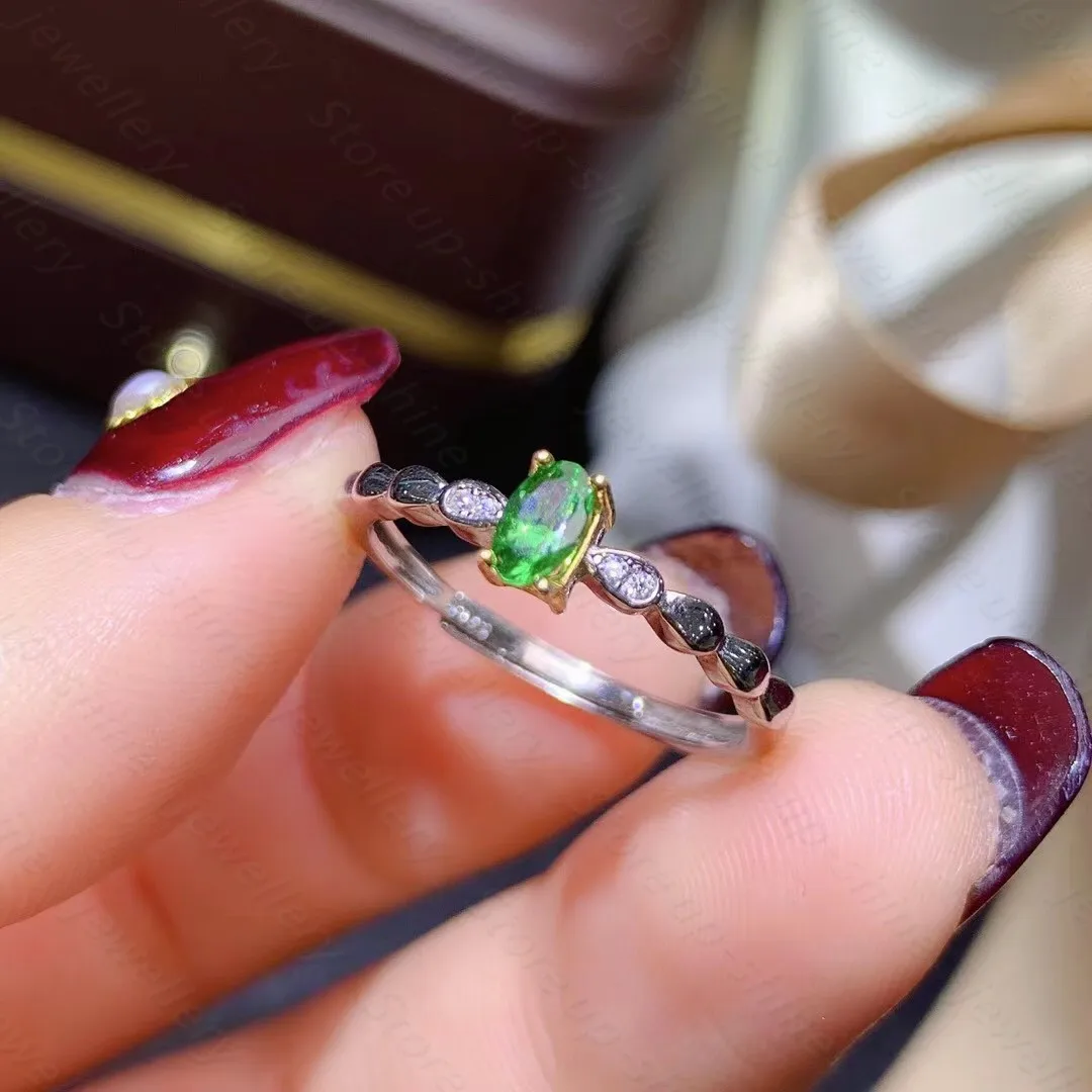 Натуральное кольцо с цаворитом 925 Серебряное женское кольцо свежий, простой и атмосферный дизайн