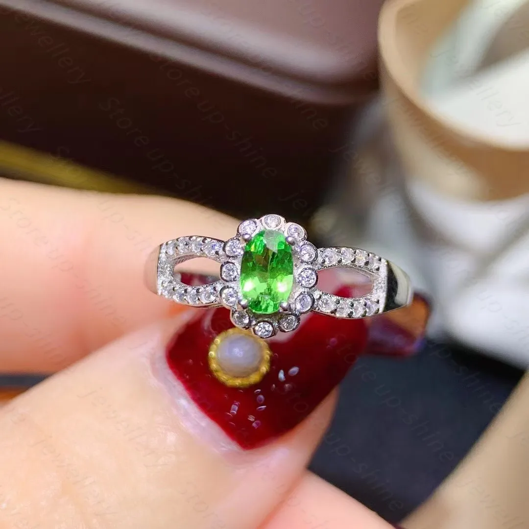 Натуральное кольцо с цаворитом 925 Серебряное женское кольцо свежий, простой и атмосферный дизайн