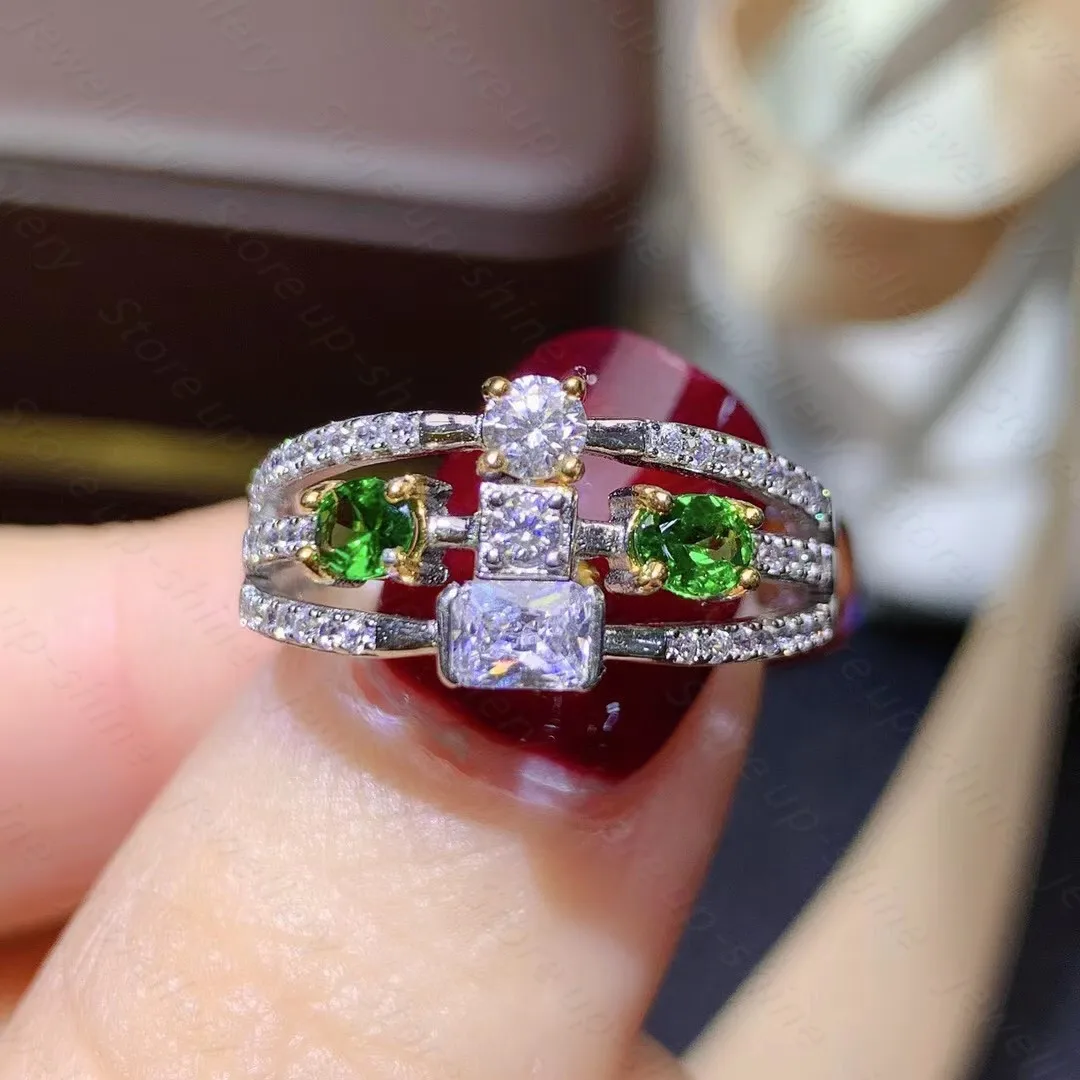 Натуральное кольцо с цаворитом 925 Серебряное женское кольцо свежий, простой и атмосферный дизайн