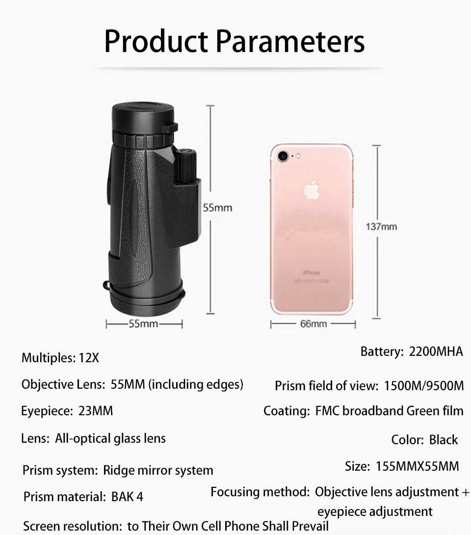 1. Монокуляры с зумом 2. Инфракрасная камера, которая может быть подключена к мобильный телефон через свой собственный wifi, и мобильный телефон может смотреть экран 3. Подключите инфракрасную камеру к телескопу, чтобы стать монокулярным устройством ночного видения, и телефон может смотреть изображение телескопа