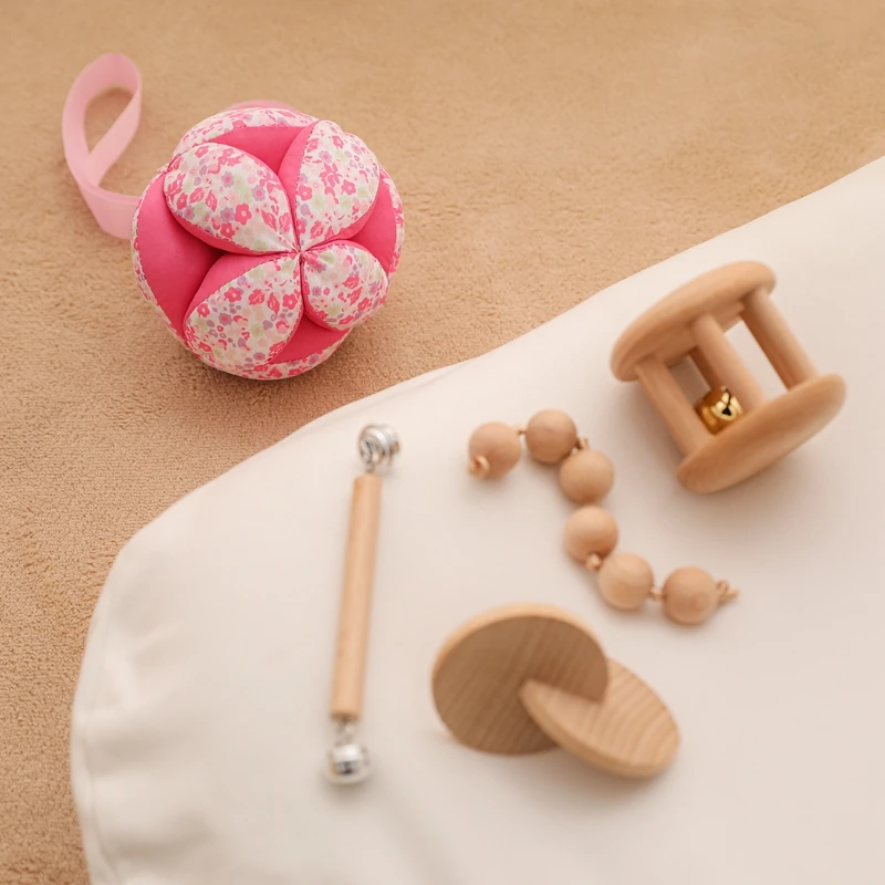 5 шт. Набор детских игрушек Монтессори, деревянные погремушки для малышей, цветной тканевый мячик ручной работы, игрушки для новорожденных, детский подарок, звуковые игрушки, игра-головоломка
