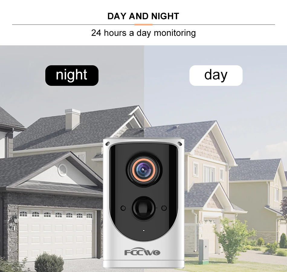 Аккумуляторная камера FCCWO 1080p с солнечной панелью, IP65, Wi-Fi, двухстороннее аудио, защита от атмосферных воздействий, обнаружение движения, беспроводная камера облачного хранения