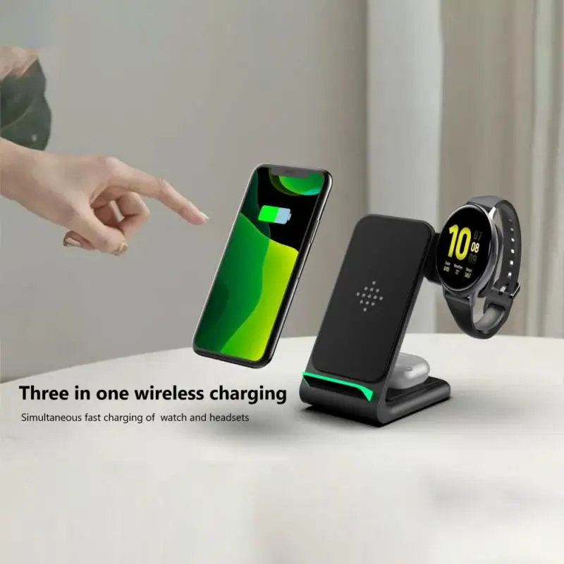 ●3 в 1 Многофункциональное Беспроводное зарядное устройство: Идеально подходит для Мобильный телефон/для Samsung Watch/для Samsung Galaxy Buds/в то же время, требуется только Кабель-адаптер для питания всех устройств.