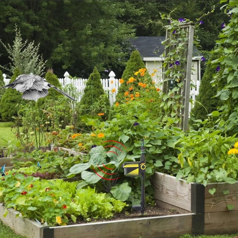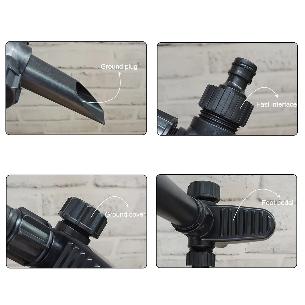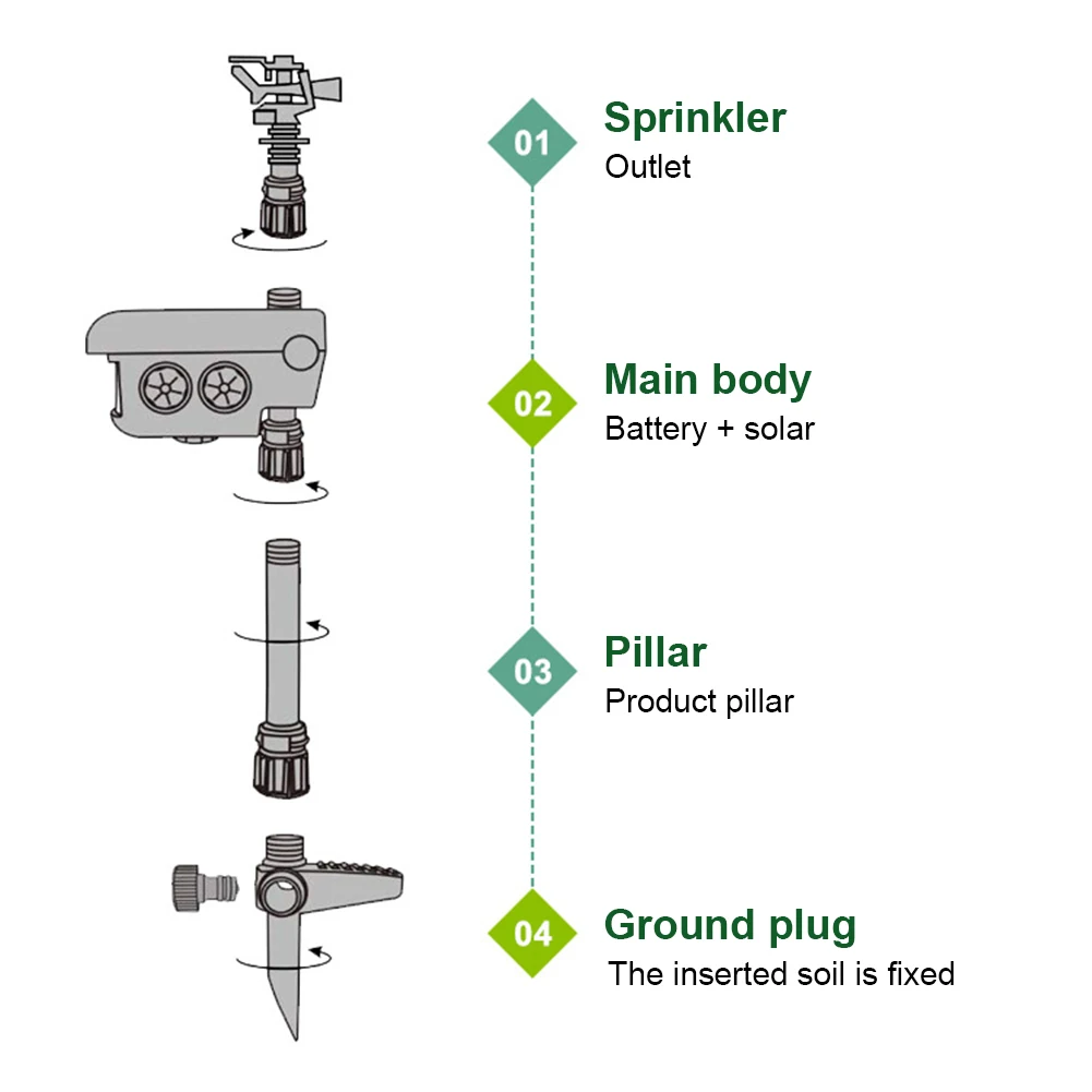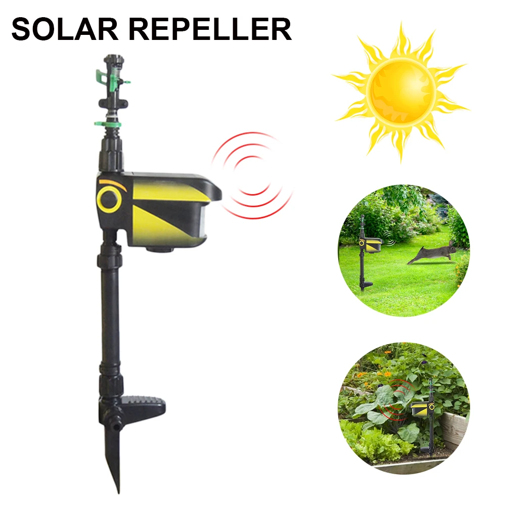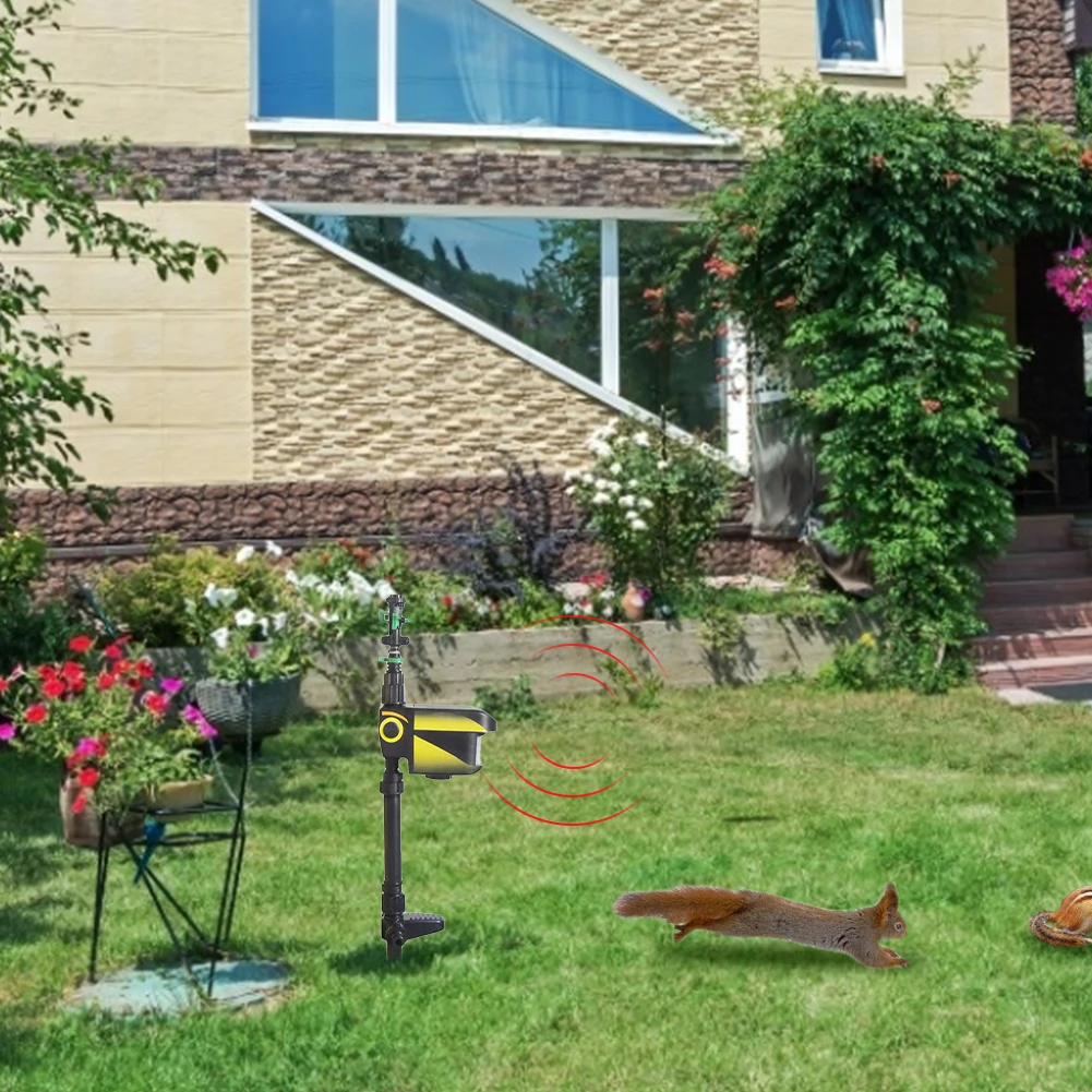* 5. Просто нажмите заостренный кол в почву или газон, чтобы крепко держать отпугивателя животных на месте.