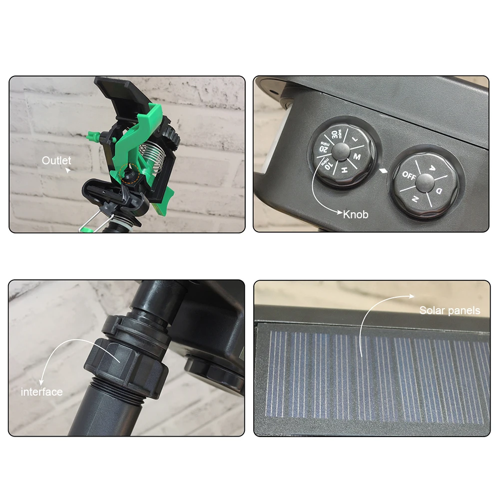 * 3. Когда вторгающиеся животные входят в радиус действия PIR, Отпугиватель может извлечь воду из вращающегося спринклера и выпустить сильную вспышку, чтобы увезти их, сохранить свой сад, сад, питомник и пруд от неожиданных животных.
