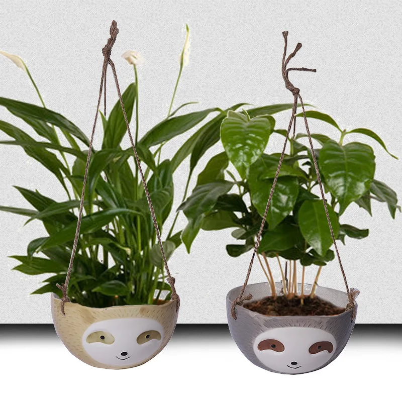Скандинавский креативный керамический цветочный горшок, висящая керамическая ваза, керамическая мультяшная ленивая подвесная корзина большого размера, сочный цветочный горшок для выращивания