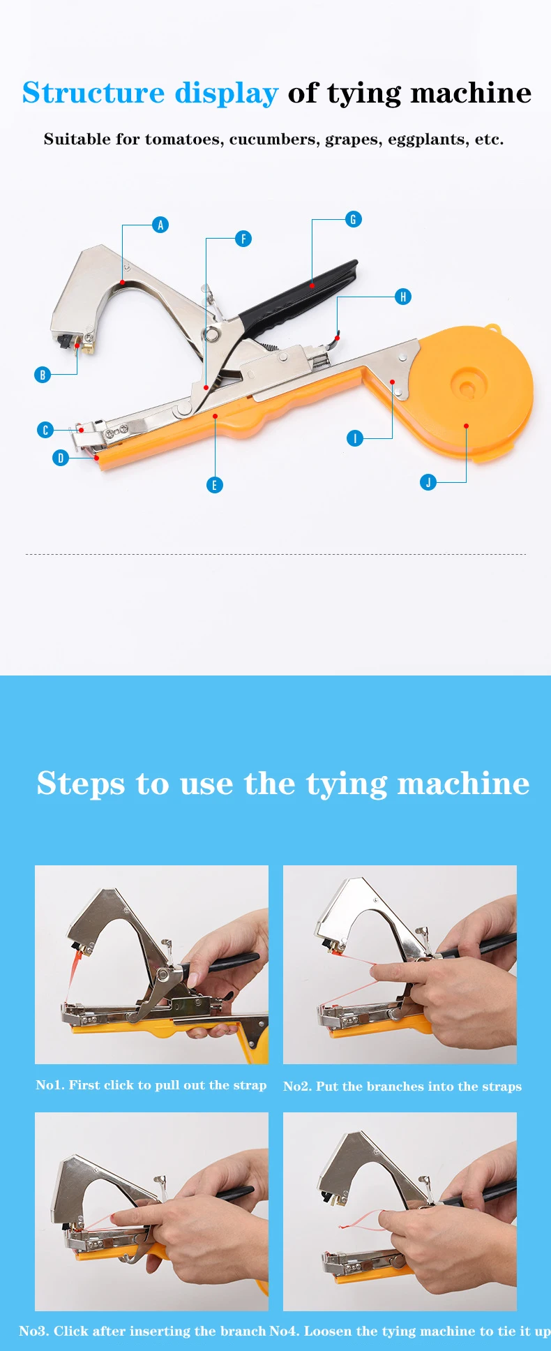 Легко и легко связать ветви: Используйте ремешок, чтобы связать ветви, просто нажав на связывающую машину