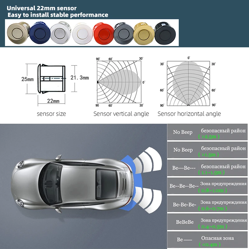 4 * парковочные датчики с линией 2,5 м (если вам нужны другие цвета, пожалуйста, выберите другой посылка и оставьте сообщение в заказе)