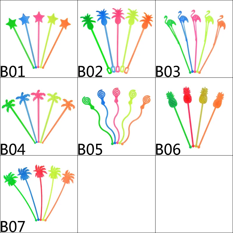 10 шт красочные прозрачные пластиковые коктейльные палочки для ночного клуба, кокосовое дерево, фламинго, звезда, питьевое вино, мордочка, мешалка, вечерние инструменты