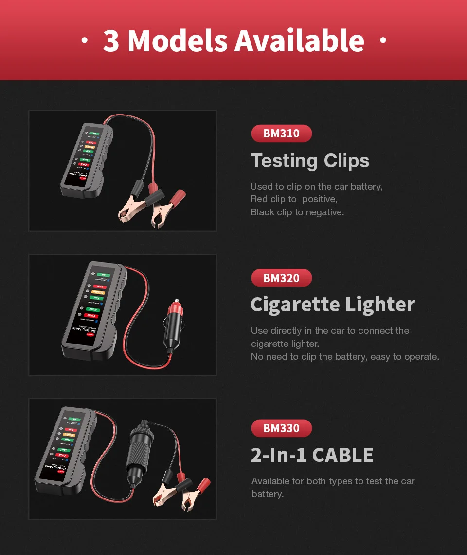BM310 BM320 мини 12 в автомобильный тестер для проверки заряда аккумулятора авто проверка состояния генератора цифровой светодиодный индикатор Дисплей диагностический инструмент