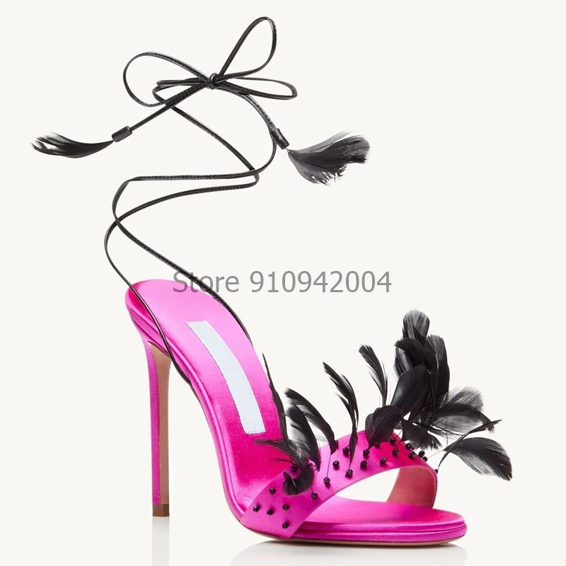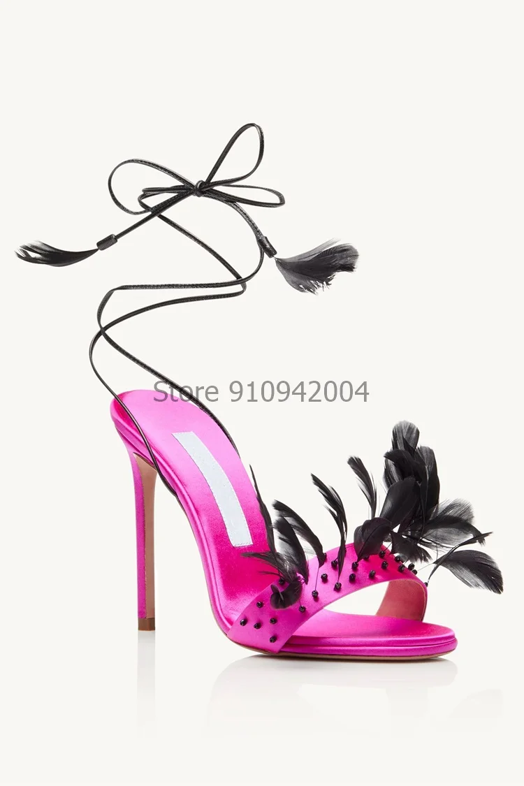 Модные Дизайнерские летние туфли на каблуке 10 см; Женские босоножки на шпильках с открытым носком; Сандалии на высоком тонком каблуке с мехом на шнуровке