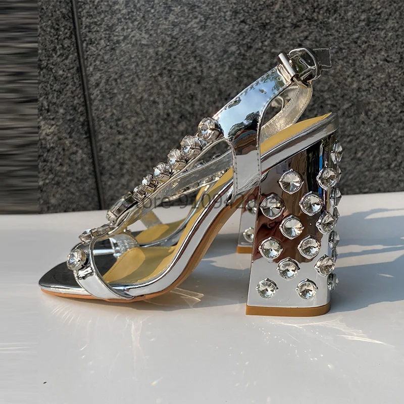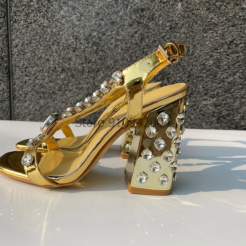 Женская обувь; Женские босоножки на высоком каблуке с украшением в виде кристаллов; Женская летняя обувь на не сужающемся книзу массивном каблуке; Цвет золотой, серебряный; Zapatos Mujer