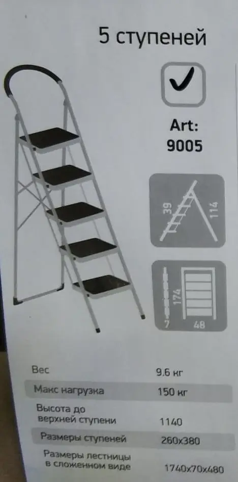 Height to top step 98 cm, depth in the unfolded form 82 cm, with supports 46 cm, step step 26 cm, L * W * h level 38*26*2,5 (CM)