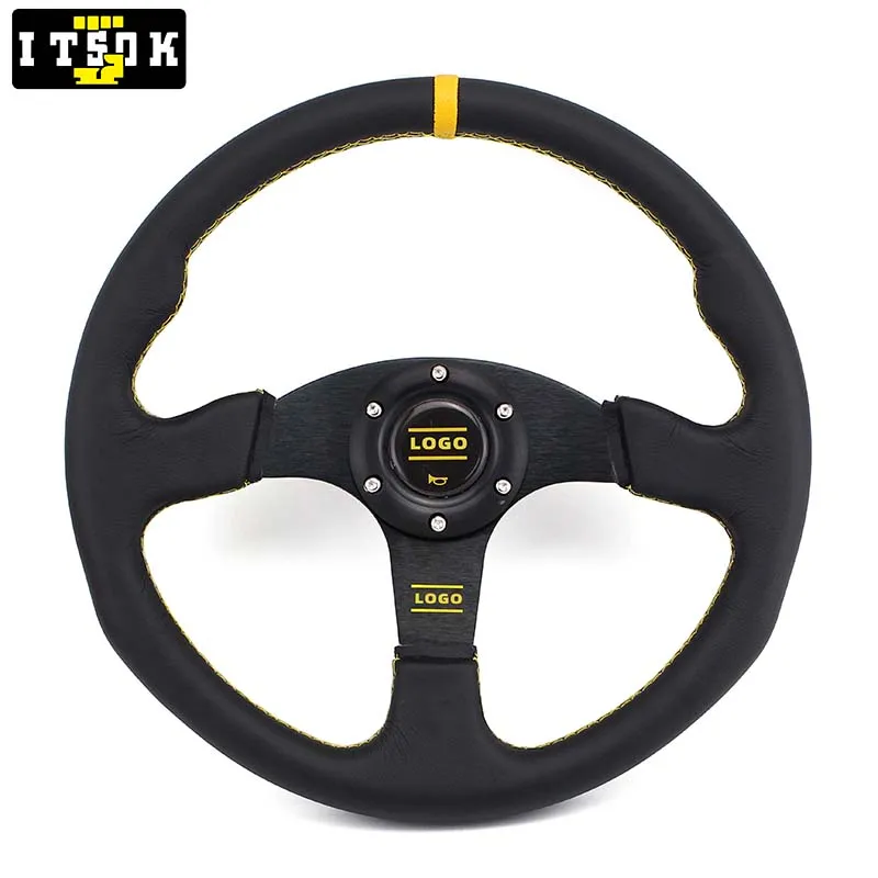 Руль из кожи OM, универсальный, 14 дюймов, 350 мм, с логотипом