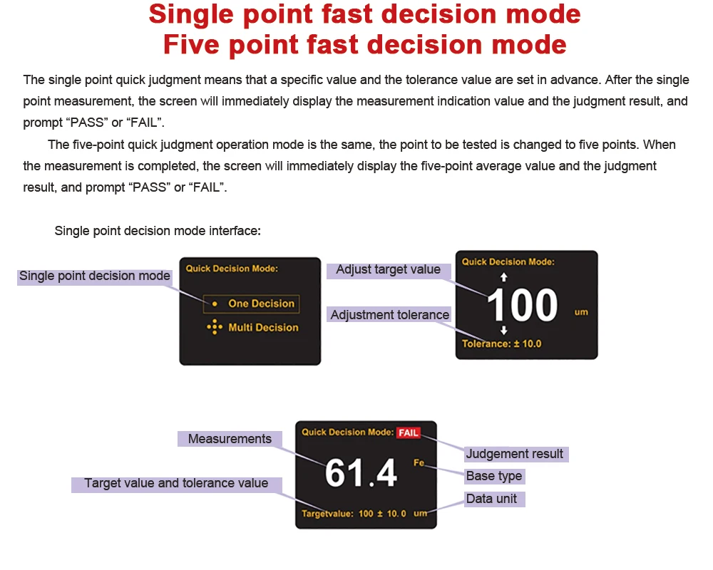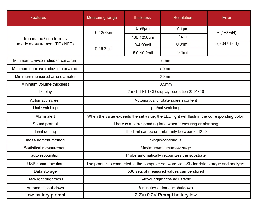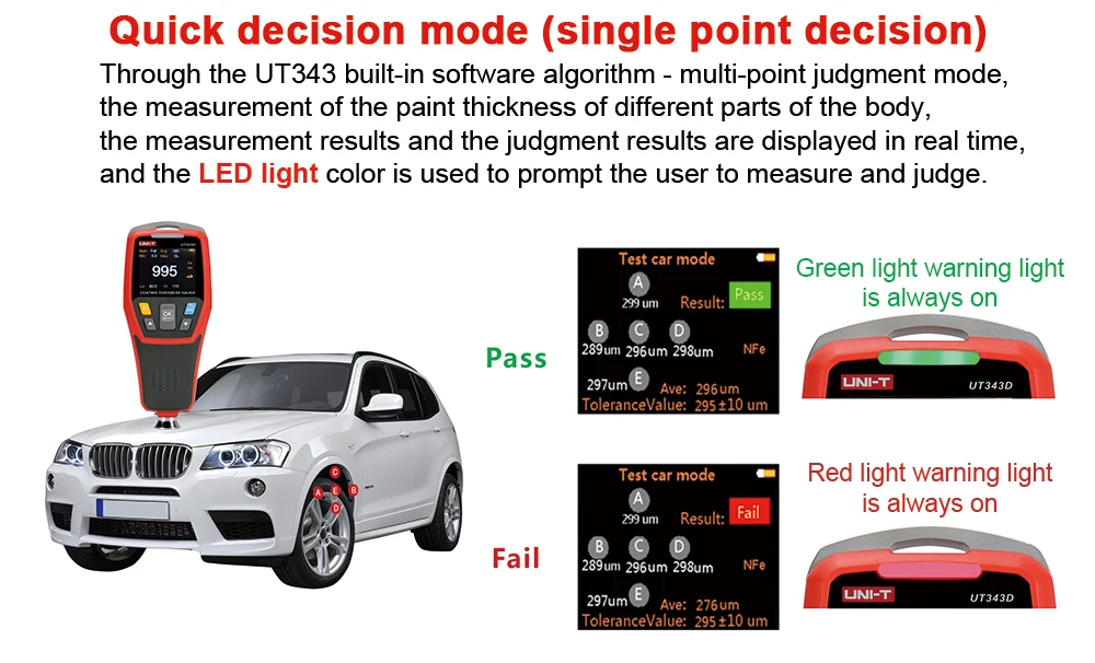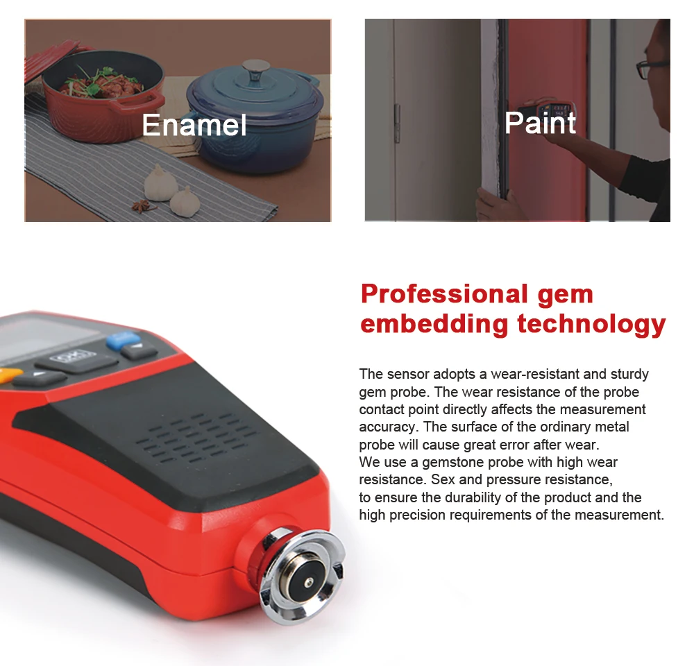 UT343D толщиномер покрытия может измерять толщину покрытия на черных и цветных материалах. Это устройство разработано с уникальной функцией быстрого тестирования, что позволяет пользователям комплект диапазон толщины и с помощью 3-цветный светодиодный и аудио функция будильника, чтобы быстро определять в том случае, если покрытие тестируется падает в течение установленного диапазона, что значительно увеличивает эффективность работы.