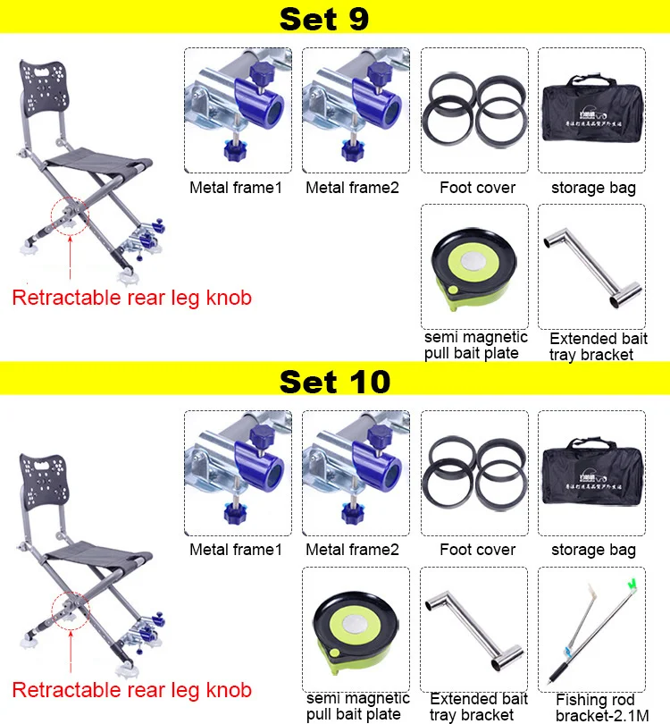 Регулируемые задние ножки: Задние ножки стульев можно отрегулировать с размером наклона, стать подходящими для всех видов рыболовных мест.