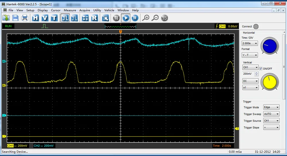 2 мВ зонд 10 в/дел @ x1 sonda; 20 мВ В ~ 100 в/дел @ x10 sonda;