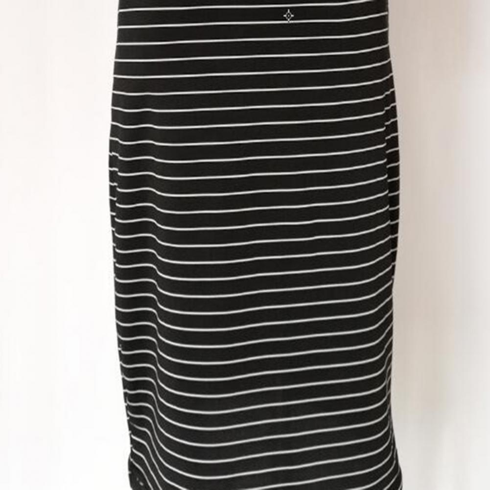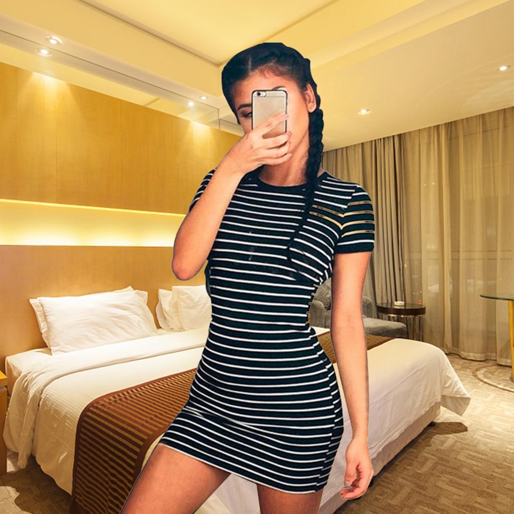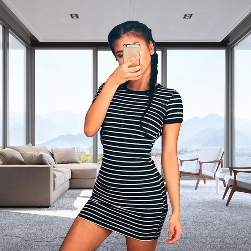 Есть много горизонтальных полос, которые добавляют моде к этому платью.