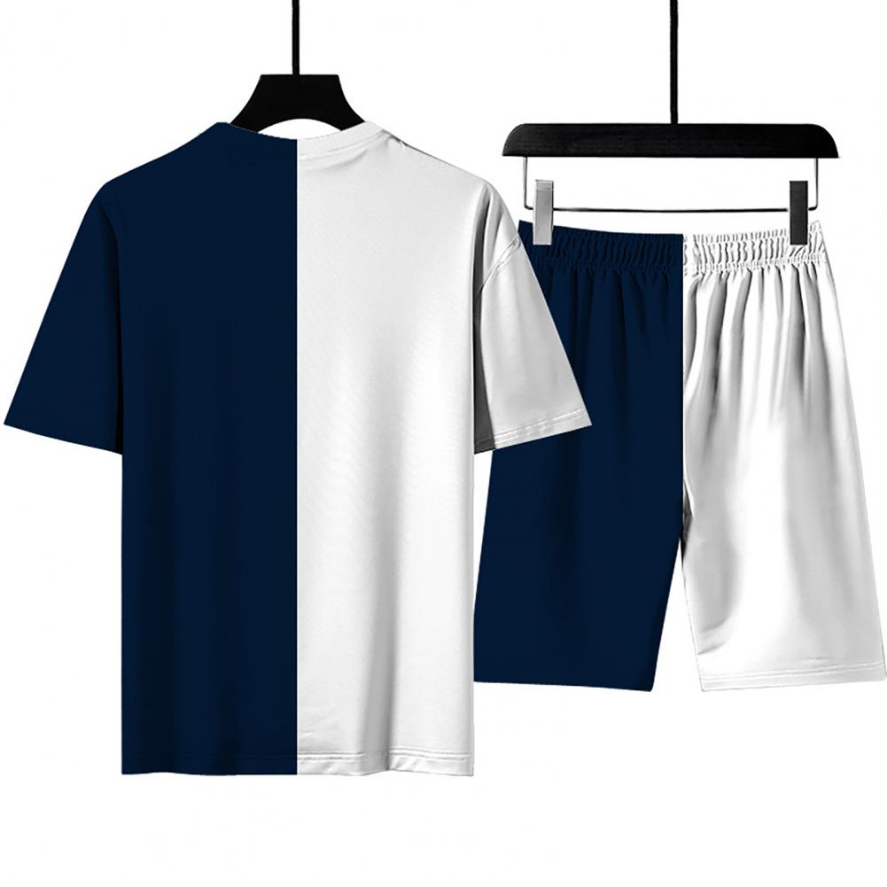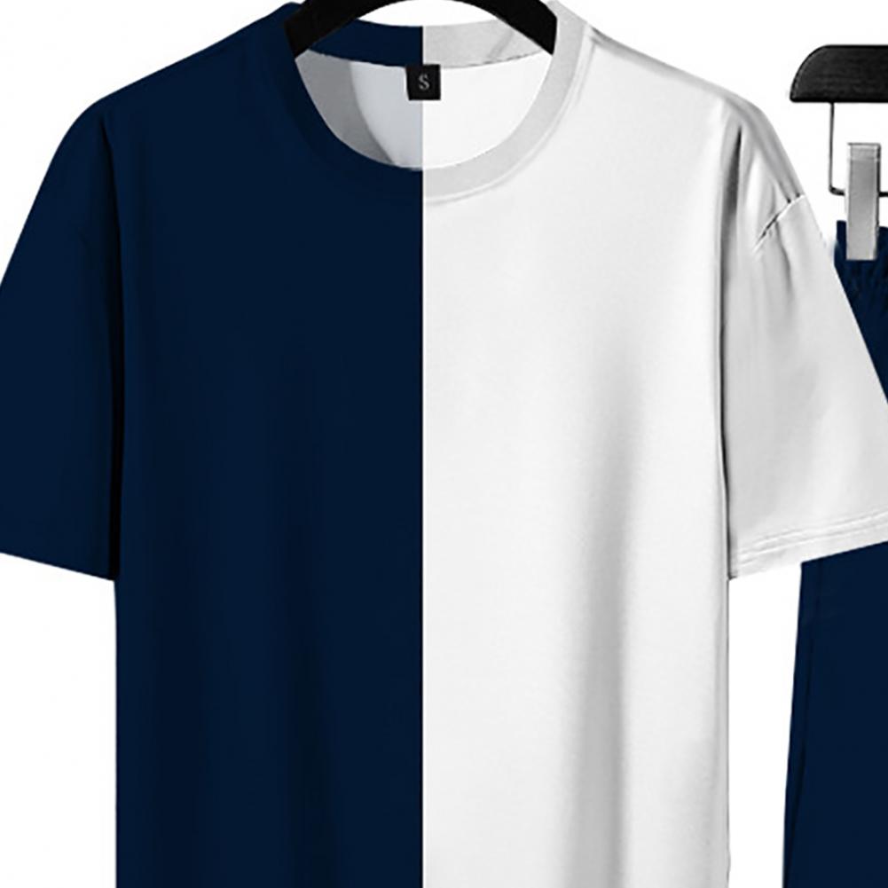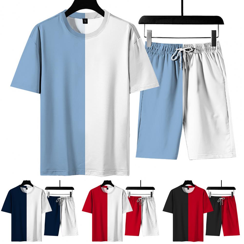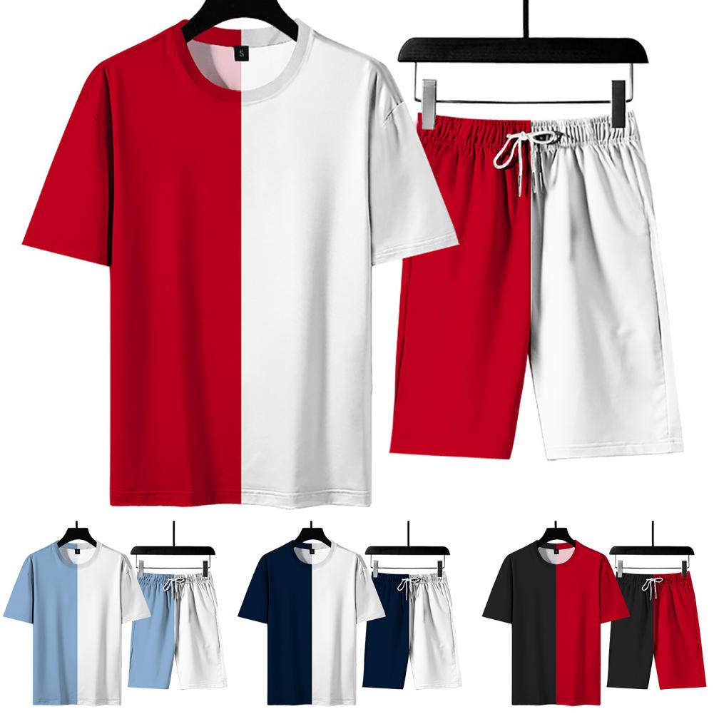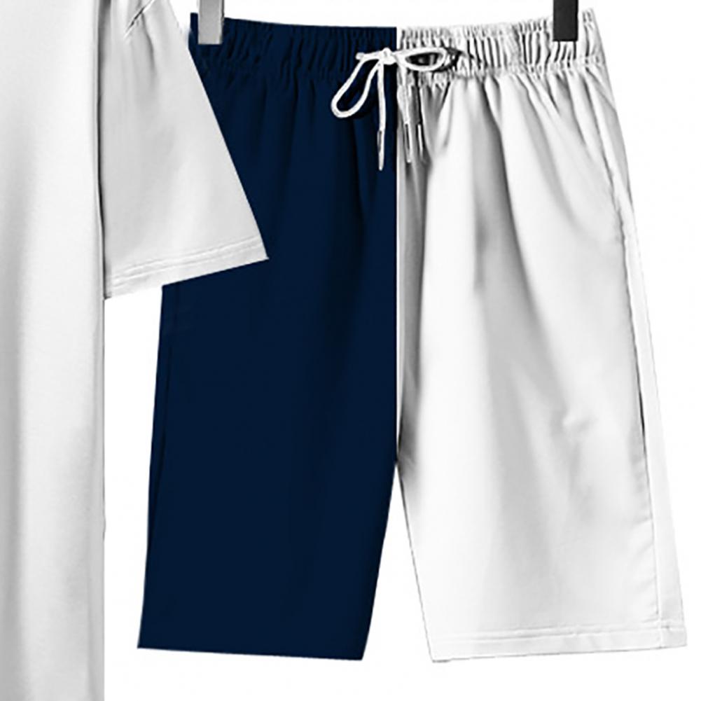Свободный спортивный костюм, сочетающий цвета, с круглым вырезом и эластичной талией, стильный и повседневный. Регулируемый шнурок шорт позволяет отрегулировать его для соответствующей плотности.