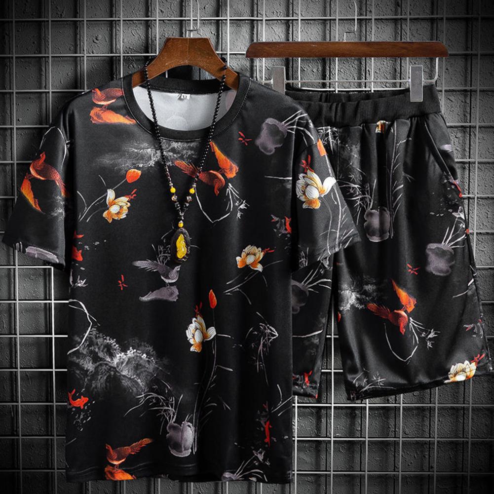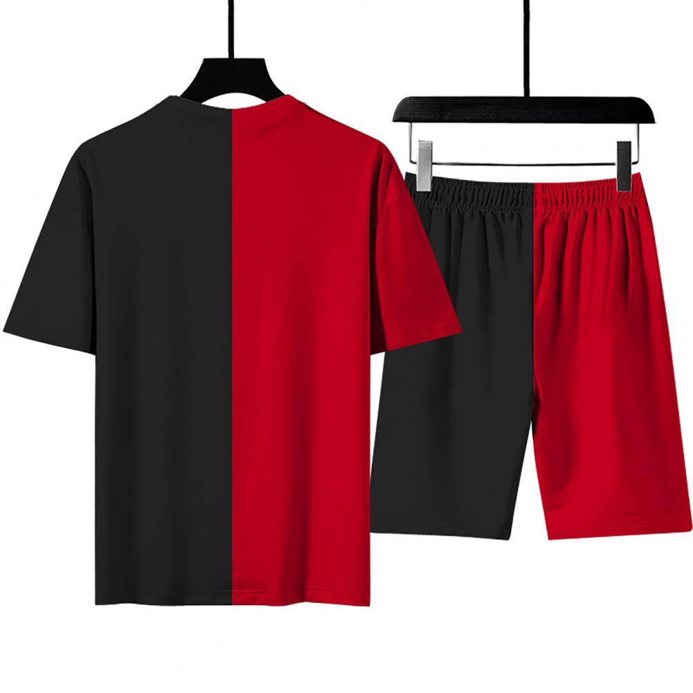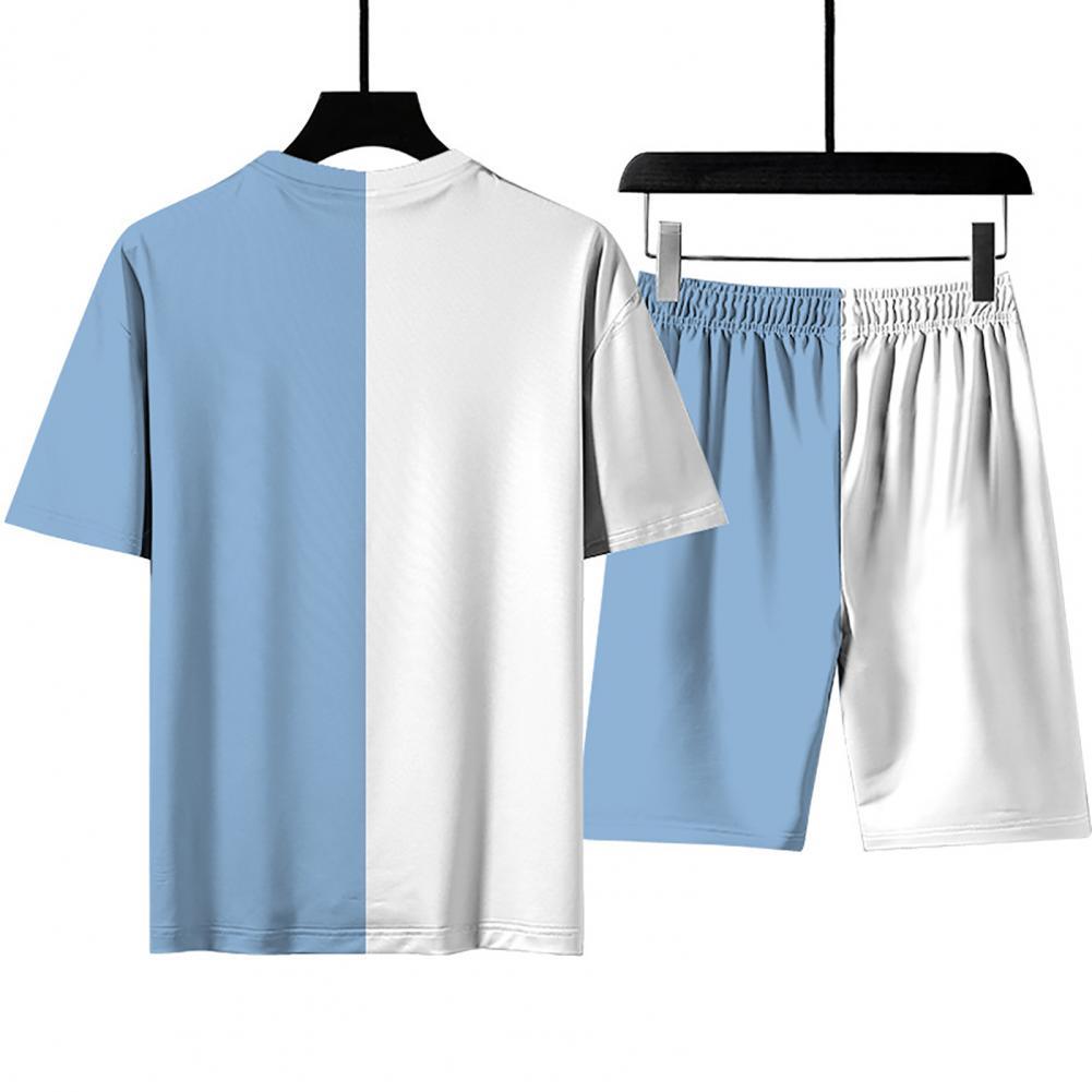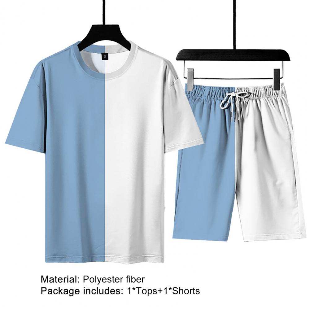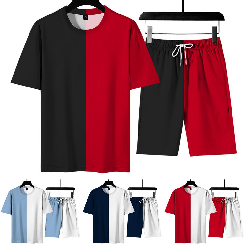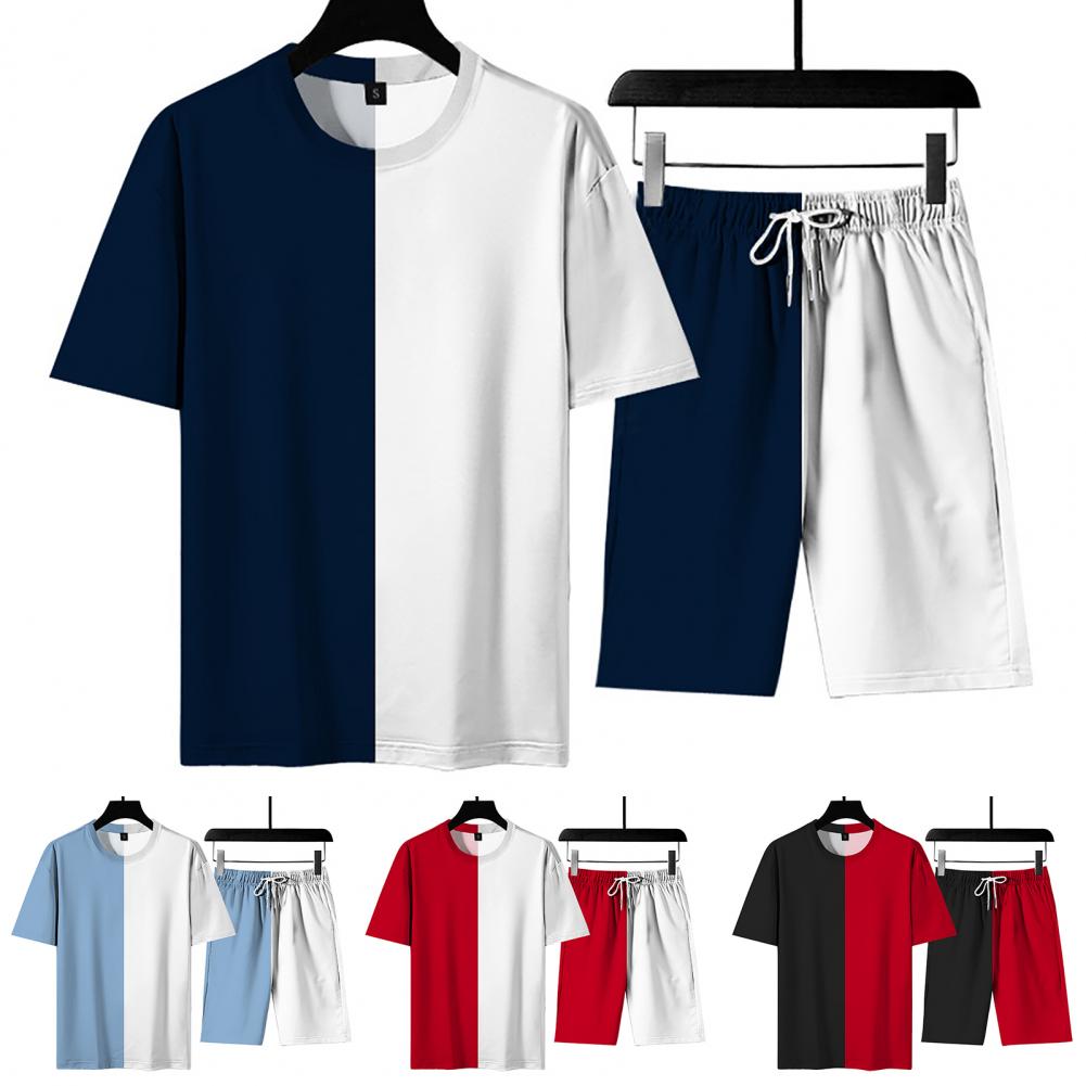 Свободный спортивный костюм, сочетающий цвета, с круглым вырезом и эластичной талией, стильный и повседневный. Регулируемый шнурок шорт позволяет отрегулировать его для соответствующей плотности.