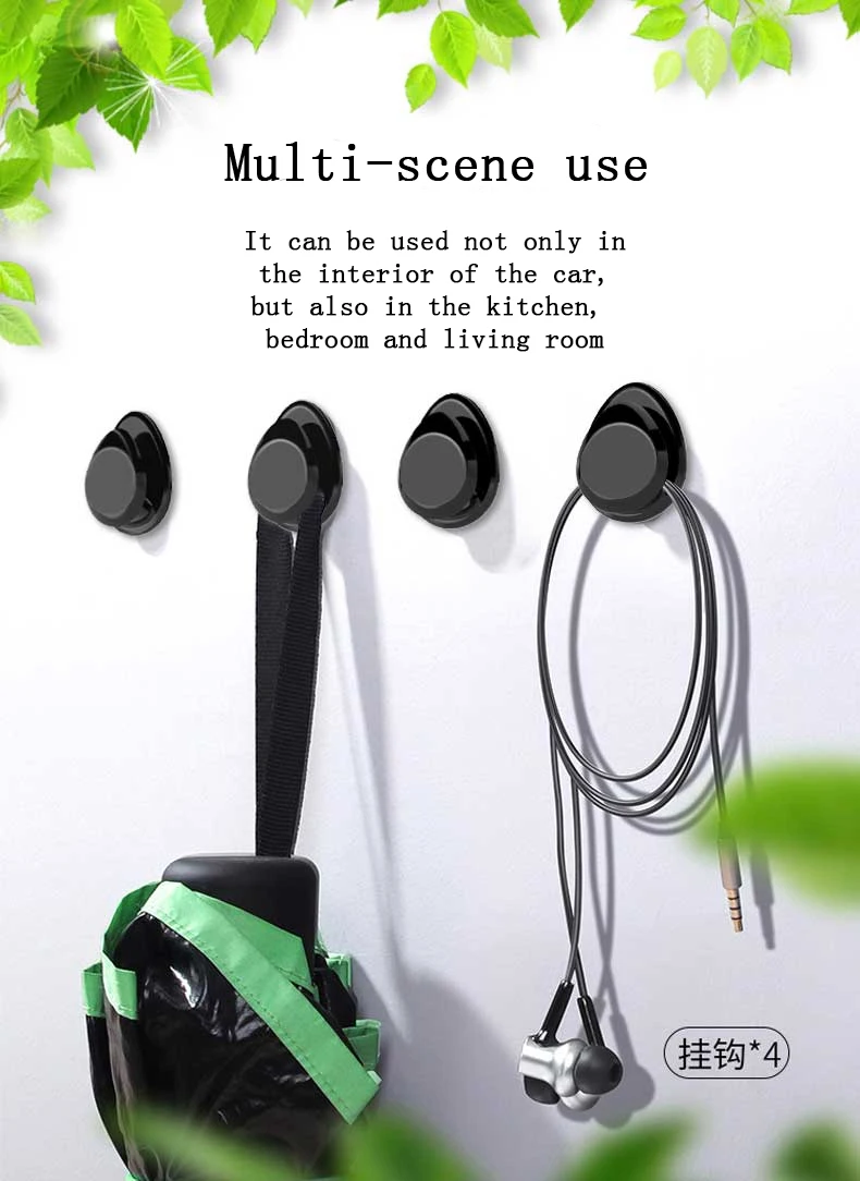 Совершенно новый и высокое качество. Мады из поликарбоната и АБС-пластика, очень прочные, прочные и устойчивые к разрыву. Многофункциональный автомобильный крюк Материал: АБС-пластик Цвет: черный Количество: 2/4 штуки в комплекте