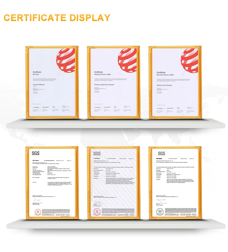 Разработан специально для удаления частиц пыли на поверхности объектива, горячий башмак и кольцо с зумом. Которая удостоила немецкую премию за дизайн с красными точками в 2019 году.