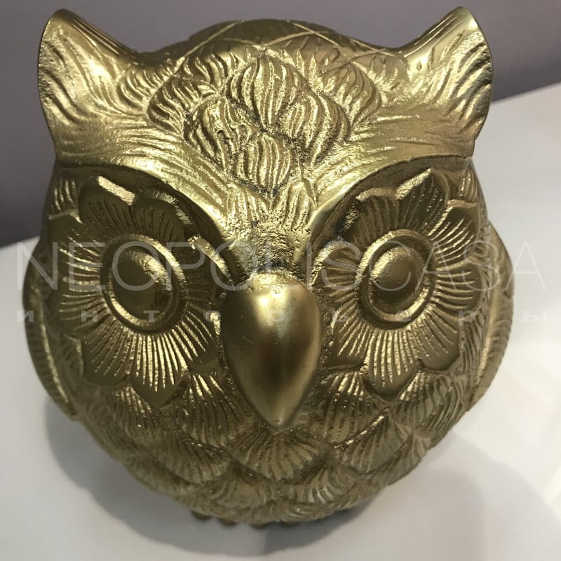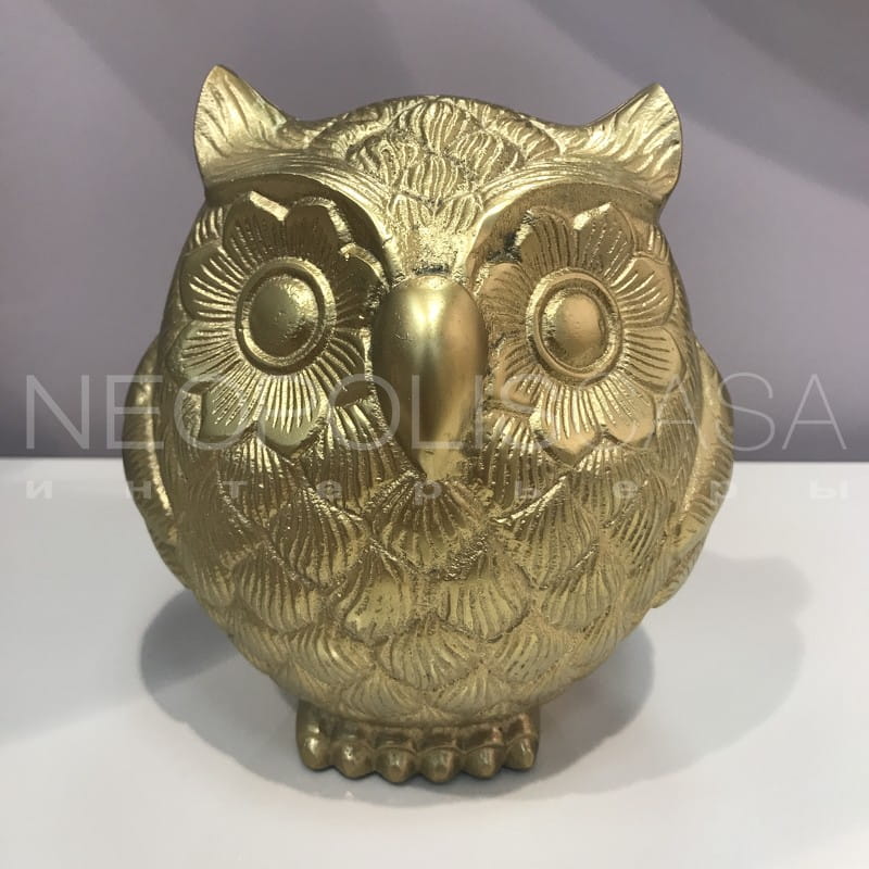 Стильная статуэтка в виде совы дополнит Ваш интерьер. Производство: США. Отделка алюминий, хромированная бронза золотистого цвета.Товар под заказ.