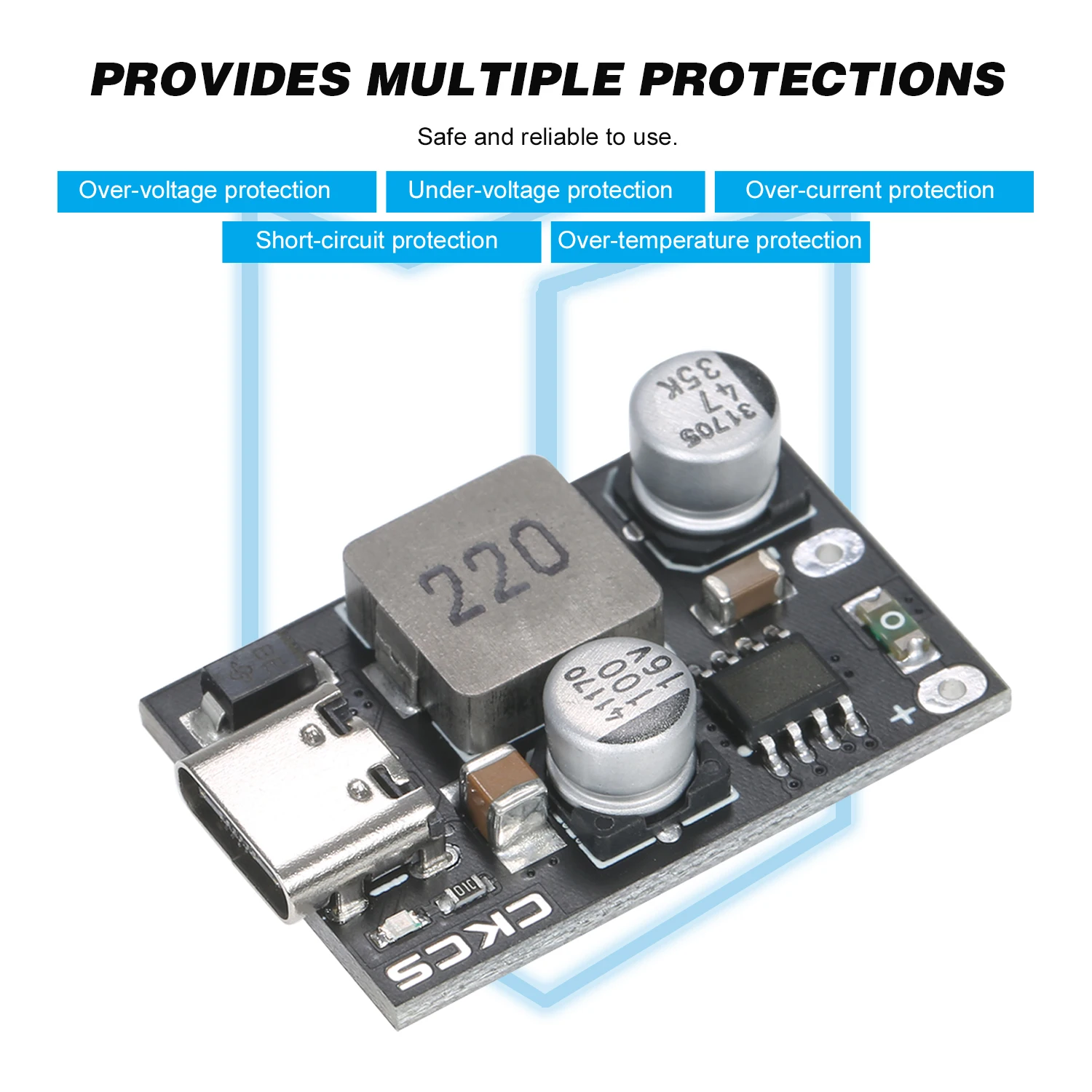 Поддерживает входное напряжение от 8 вольт до 32 вольт постоянного тока, выходное напряжение от 3 вольт до 12 вольт постоянного тока.