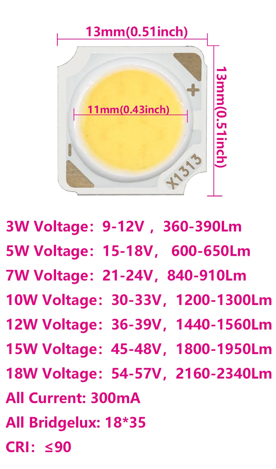 Напряжение 3 Вт: 9-12 В, 360-390Lm