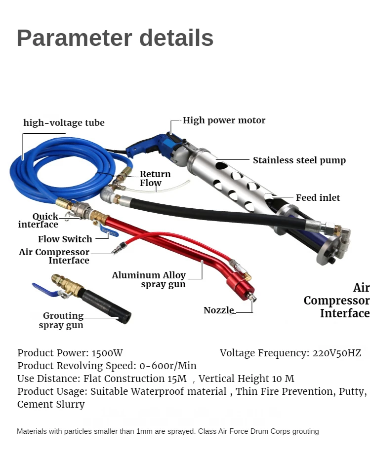 Примечание: Применение с 1,1-3KW воздушный компрессор (нет необходимости воздушный compresspr для затирки)