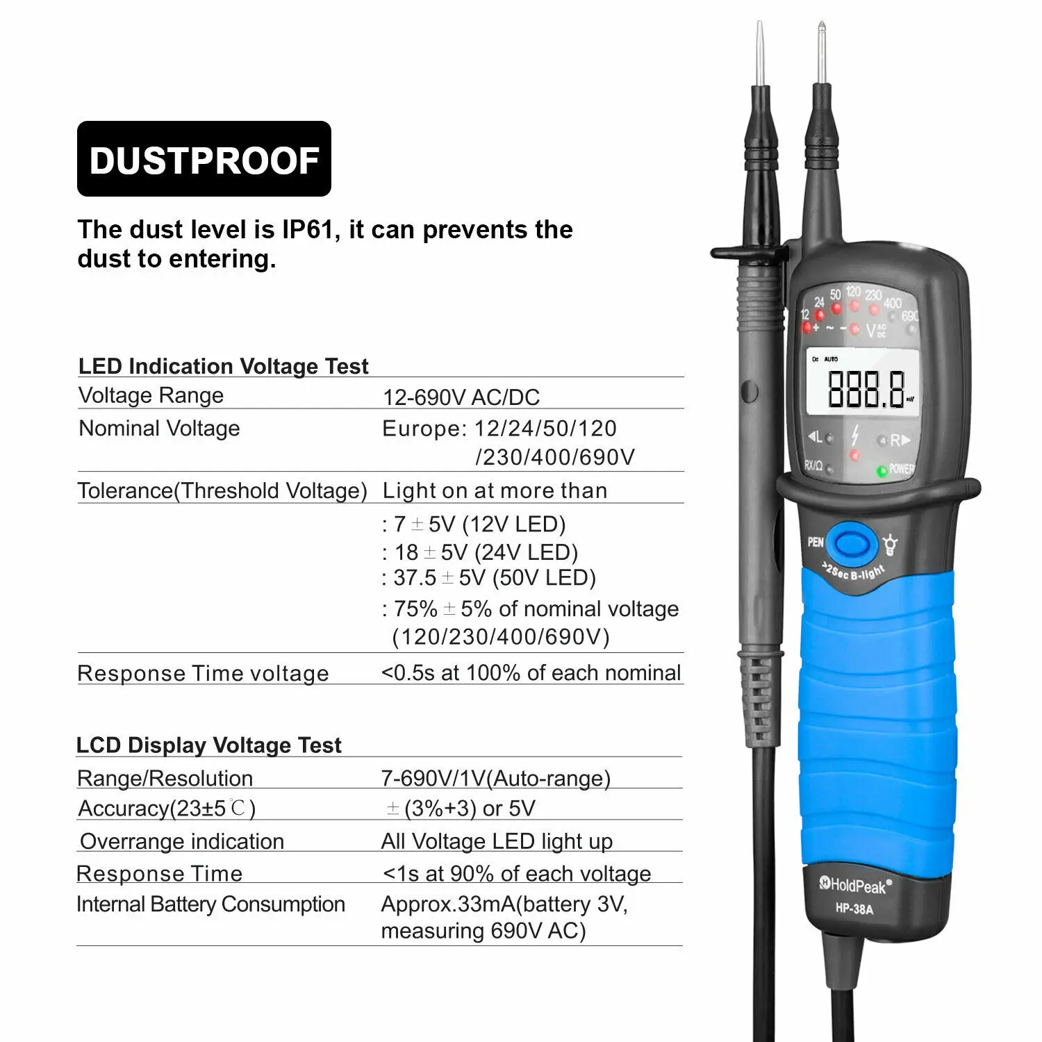 HoldPeak HP-38A Тестер Напряжения Ручка Бесконтактный вольт профессиональный светодиодный светильник цифровой LCD напряжение с индикацией низкого заряда батареи