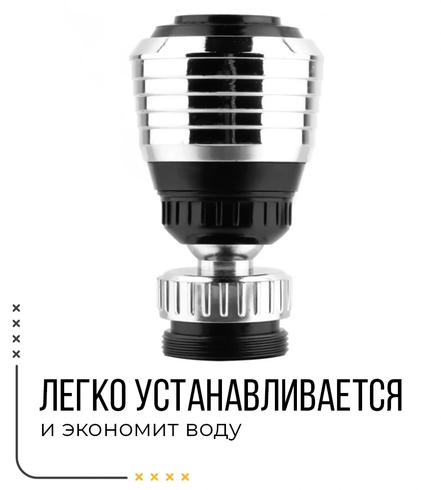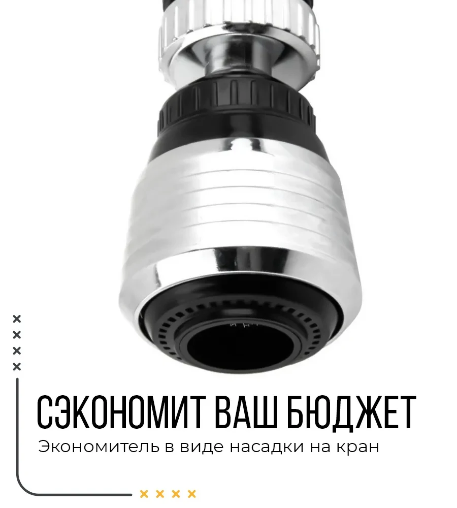 Экономитель в виде насадки на кран. Легко устанавливается, экономит воду, регулирует напор воды и направление струи.Миниатюрный аксессуар прекрасно подходит для любых типов кранов с внутренним диаметром 24 мм.