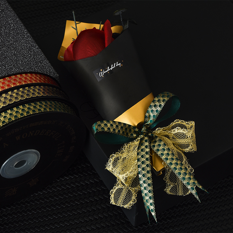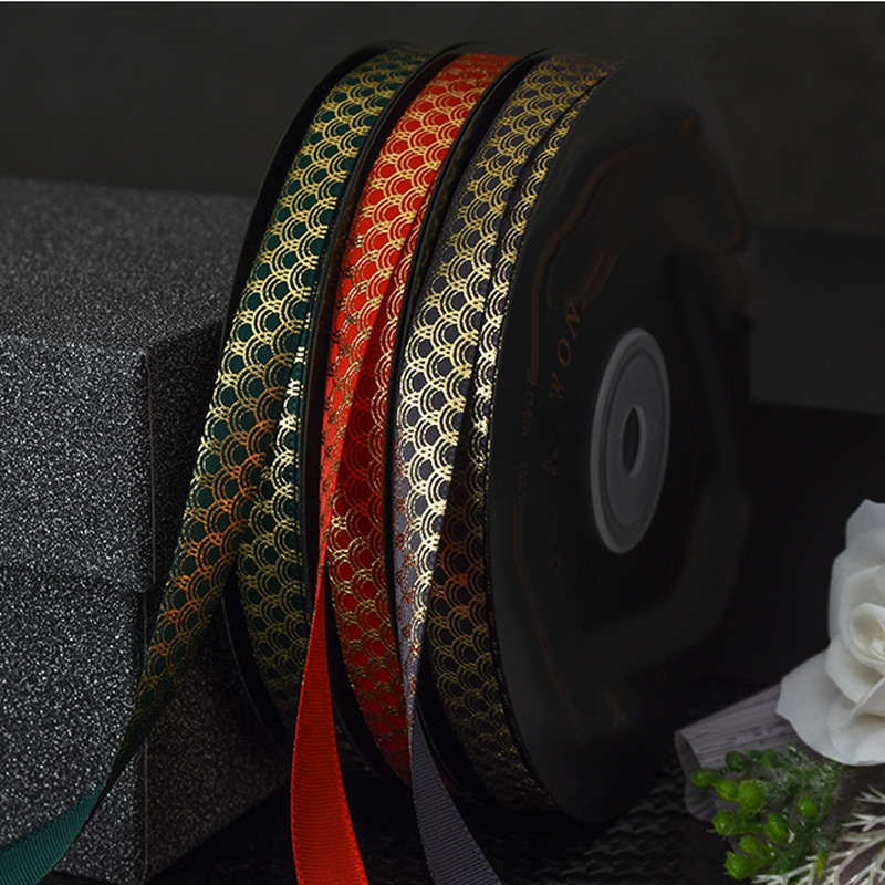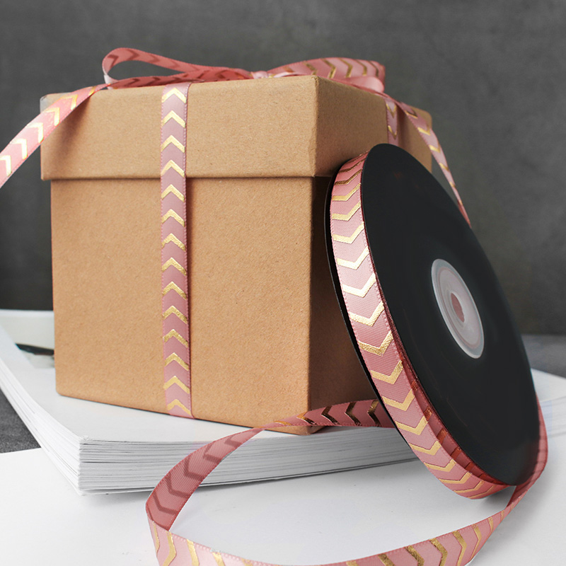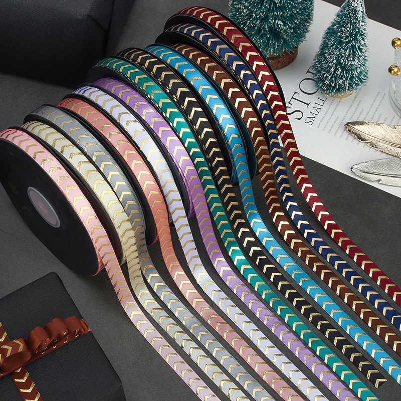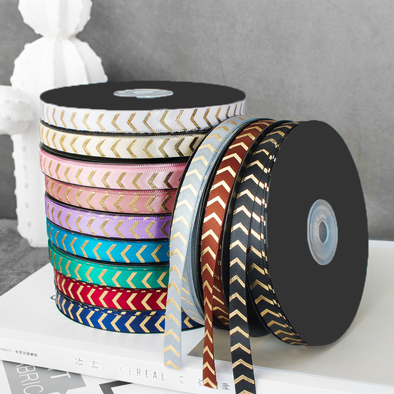 [Название продукта]:Печать золотых стрелок/волны атласная лента