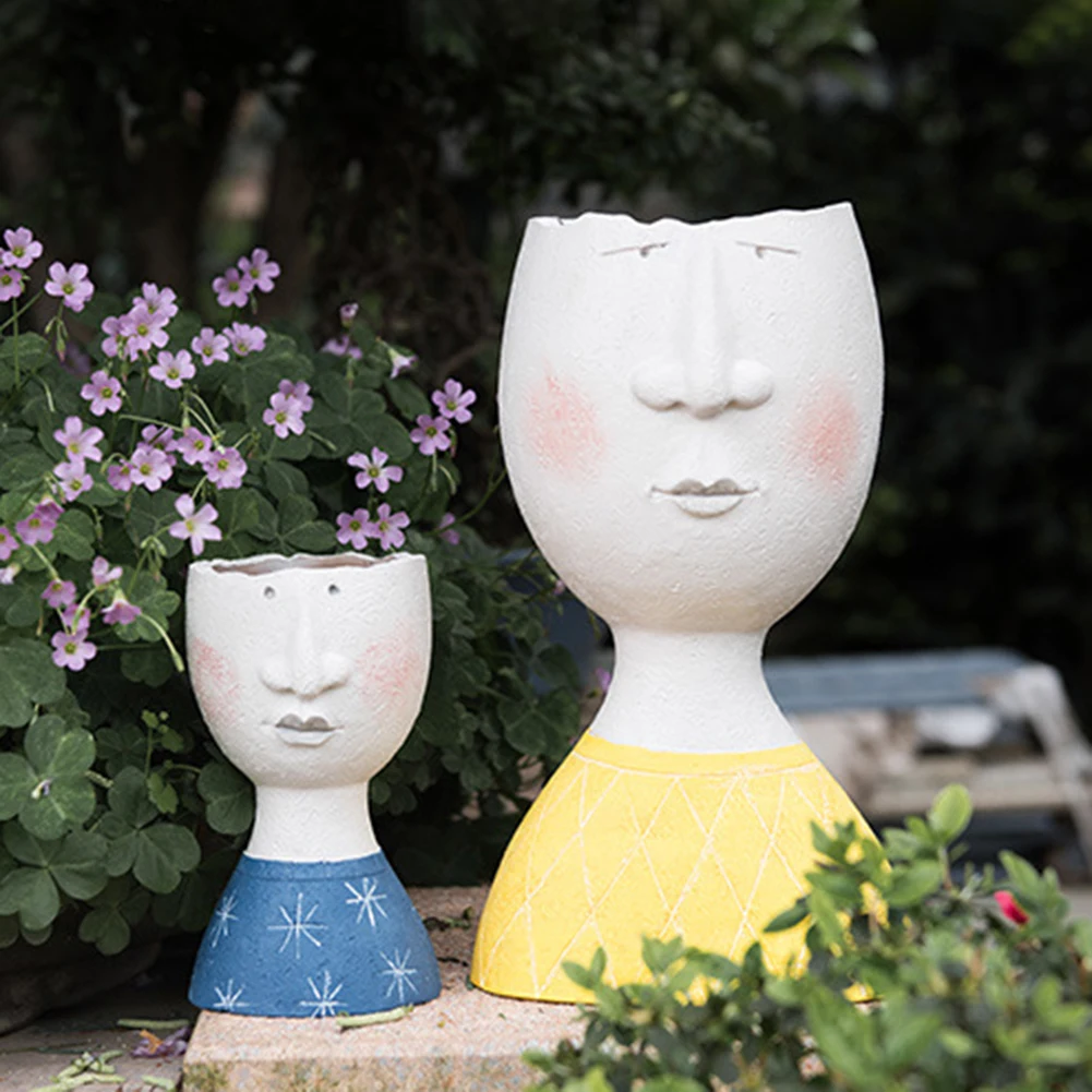 Полимерный семейный цветочный горшок с человеческим лицом ручной работы художественный Рисунок скульптура Статуэтка ваза садовый цветочный горшок для хранения домашнего декора