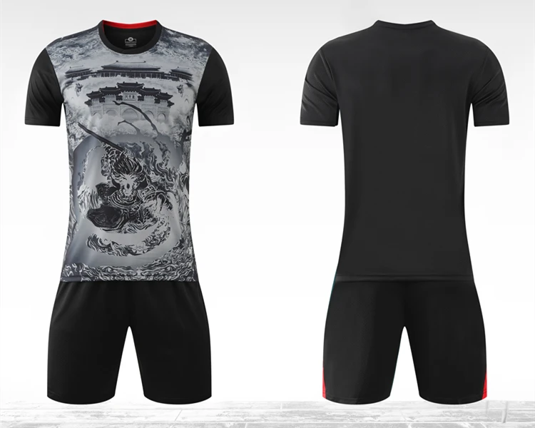 Высококачественная чистая спортивная одежда, подходит для футбола (футбола), бега, фитнеса, улицы, командной формы и т. д. Рубашка с короткими рукавами, шорты Без карманов. Принт в китайском стиле, король обезьяны причинил хаос на небесах. Полный размер, от детей до взрослых, унисекс. 100% полиэфирная ткань, мягкая, дышащая, быстросохнущая. Предоставляем профессиональные индивидуальные услуги.